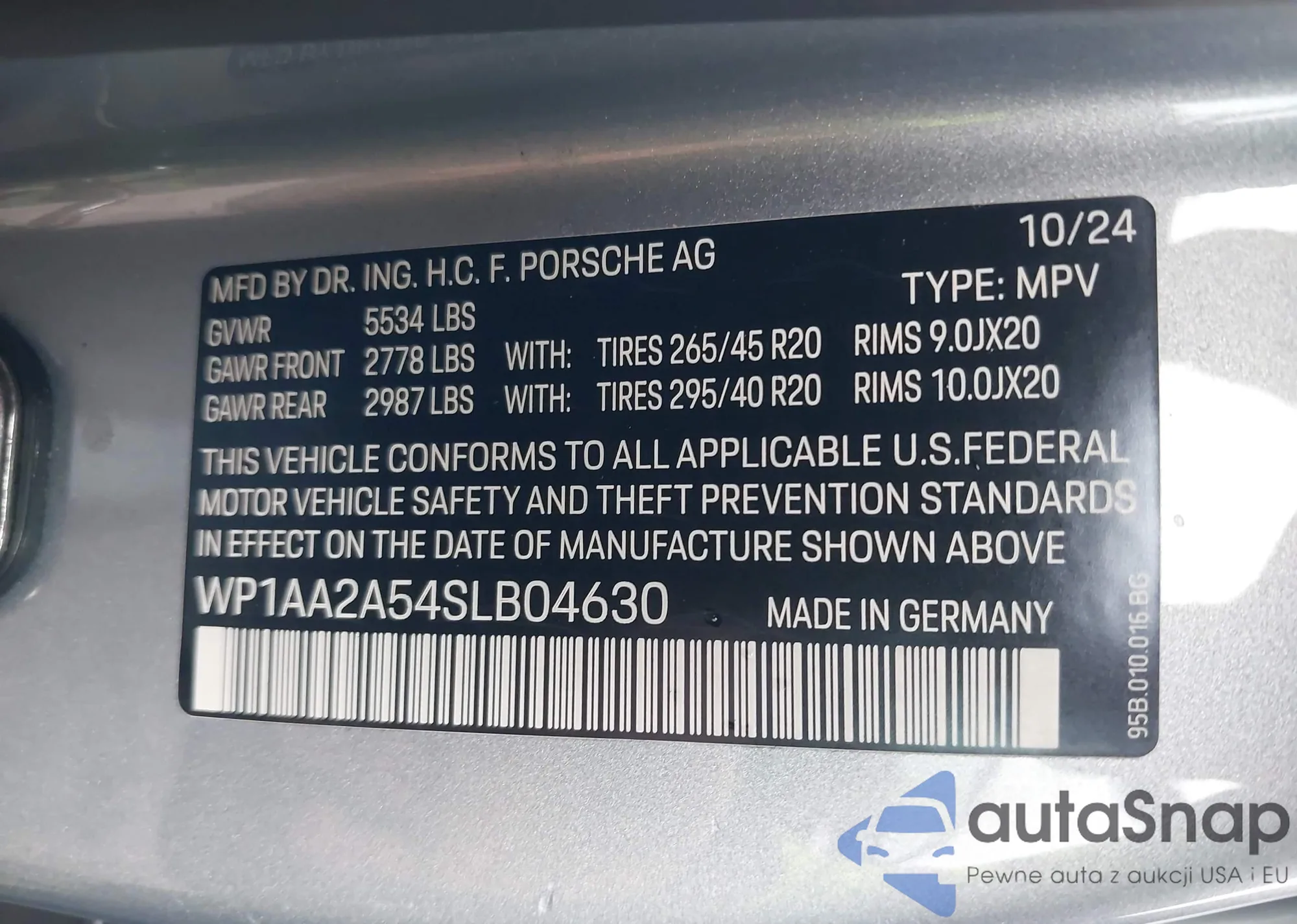 LOT: 43755668 VIN: WP1AA2A54SLB04630