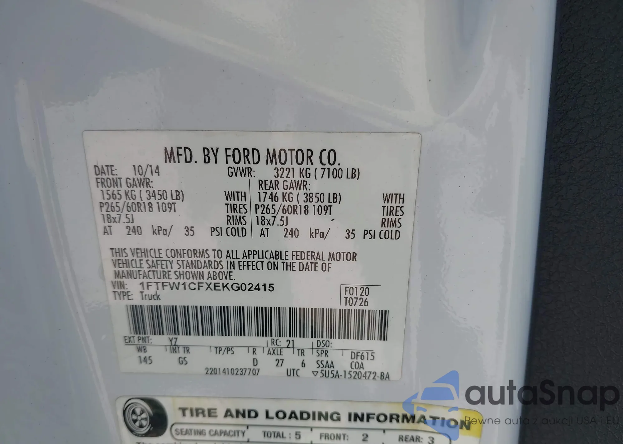 LOT: 43105397 VIN: 1FTFW1CFXEKG02415