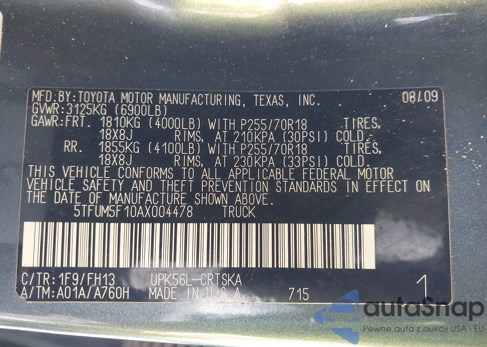 • VIN 5TFUM5F10AX004478