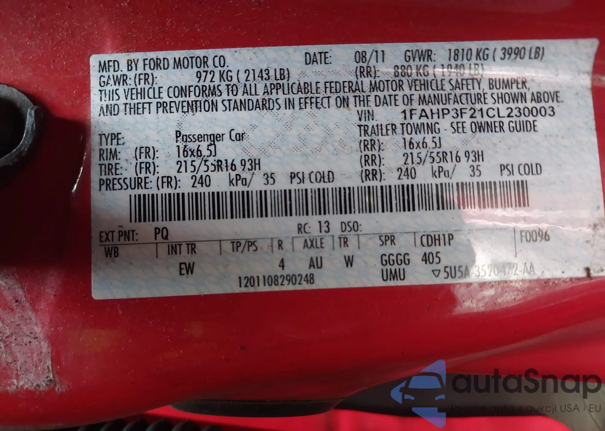 LOT: 44147966 VIN: 1FAHP3F21CL230003