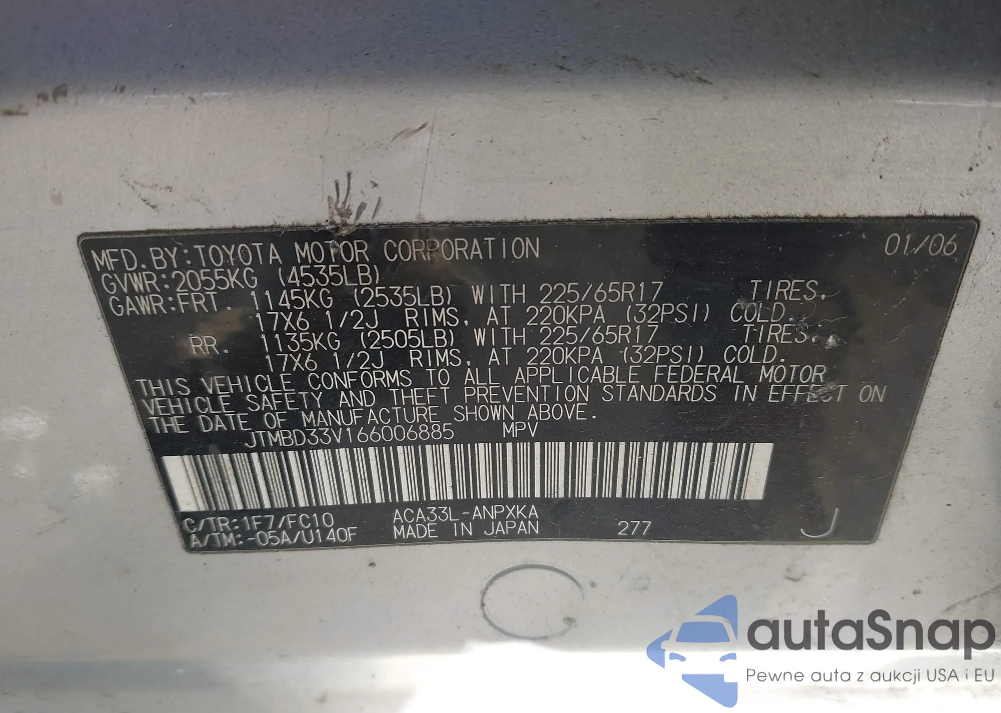 LOT: 44296254 VIN: JTMBD33V166006885