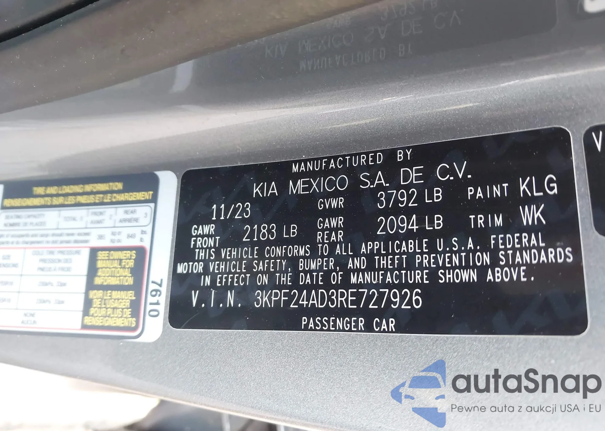 • VIN 3KPF24AD3RE727926