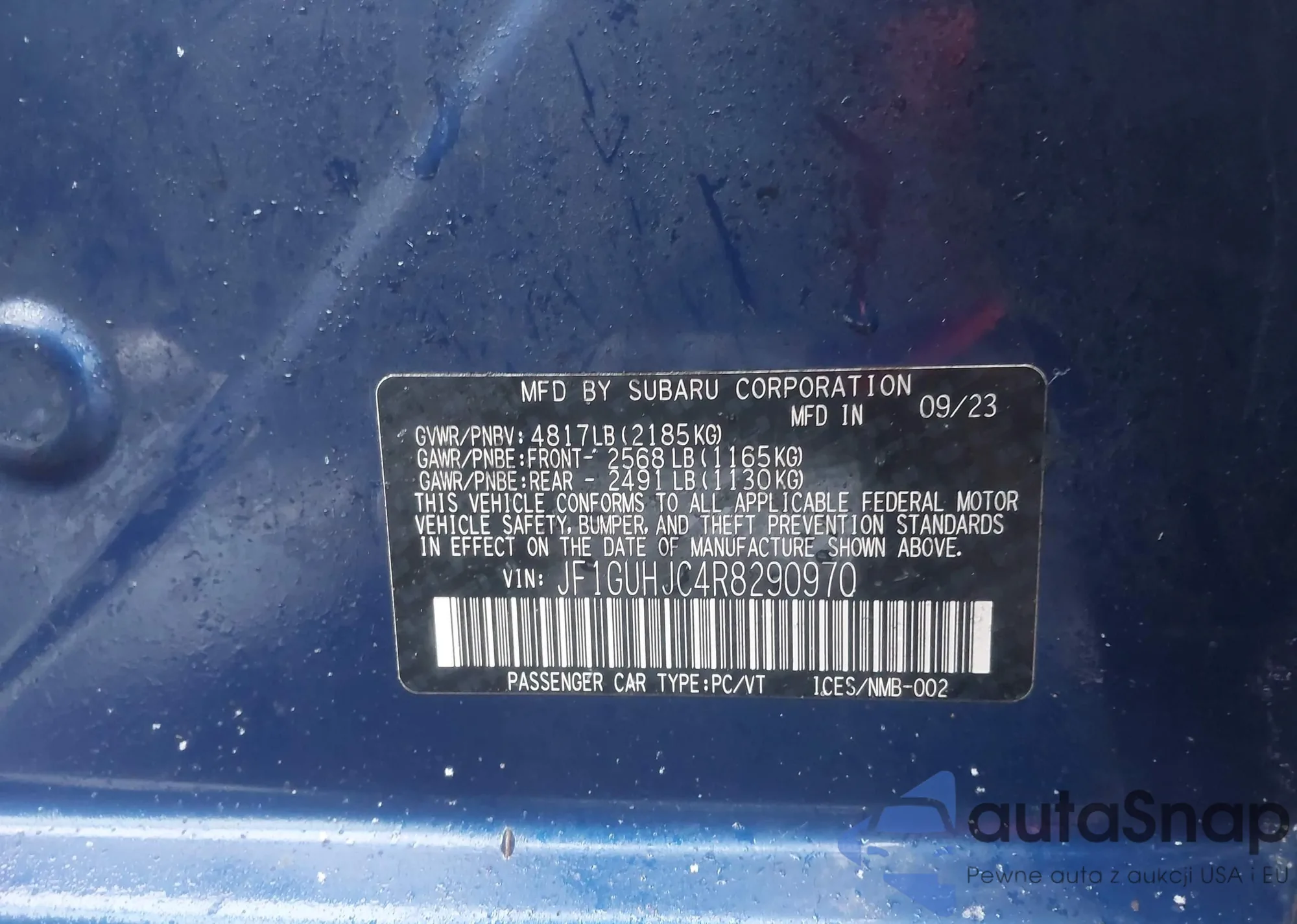 LOT: 44115812 VIN: JF1GUHJC4R8290970