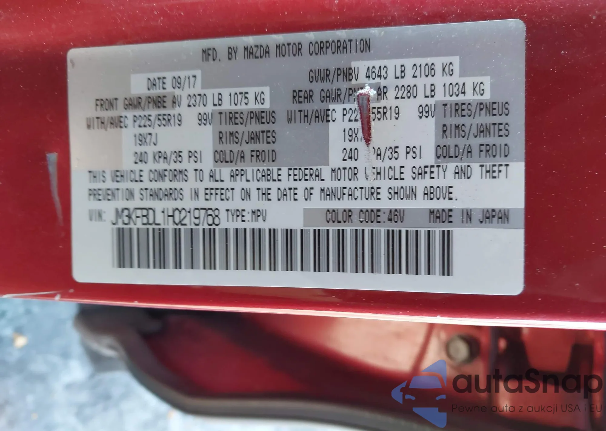 LOT: 44219195 VIN: JM3ER29L680197506