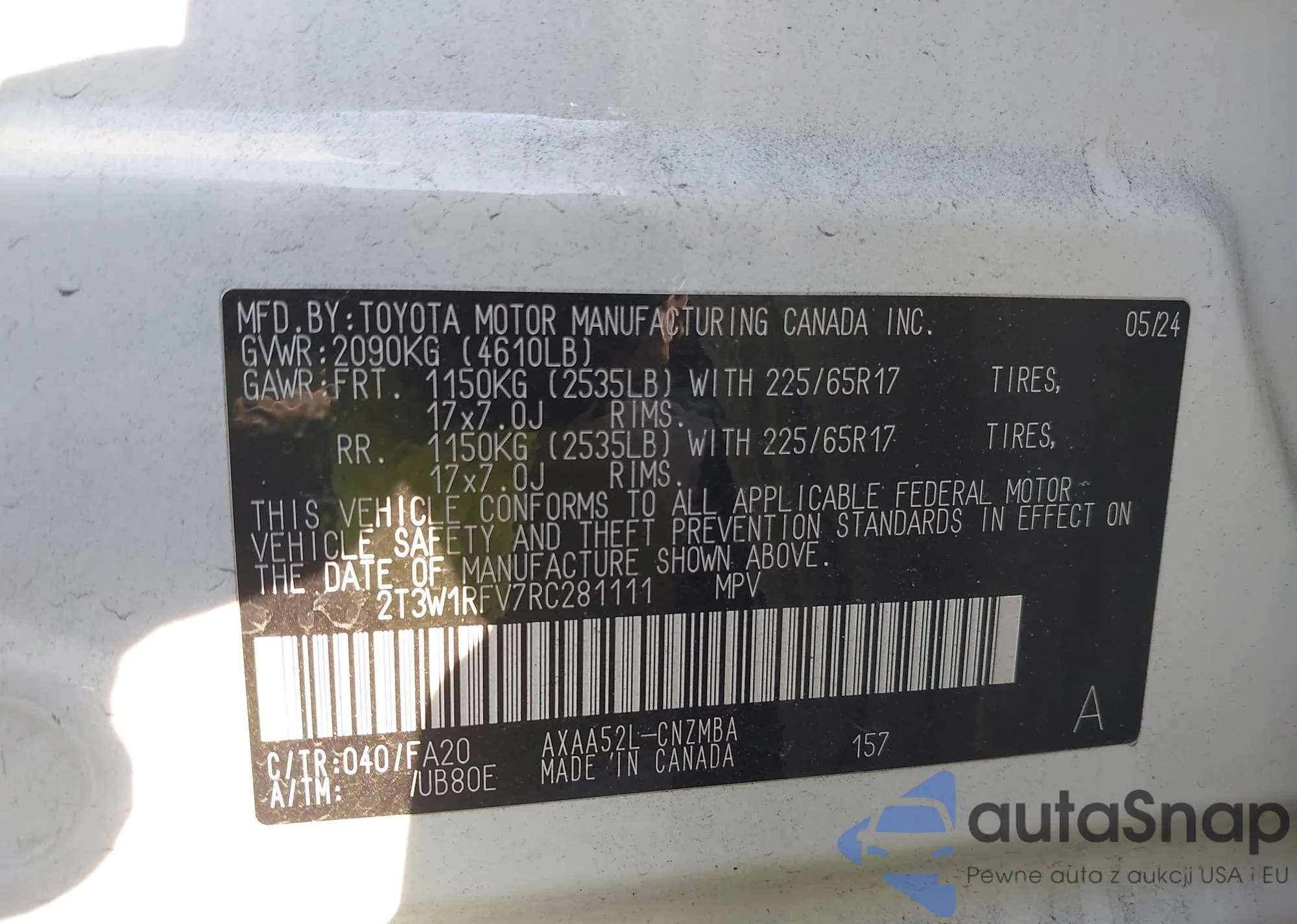 • VIN 2T3W1RFV7RC281111