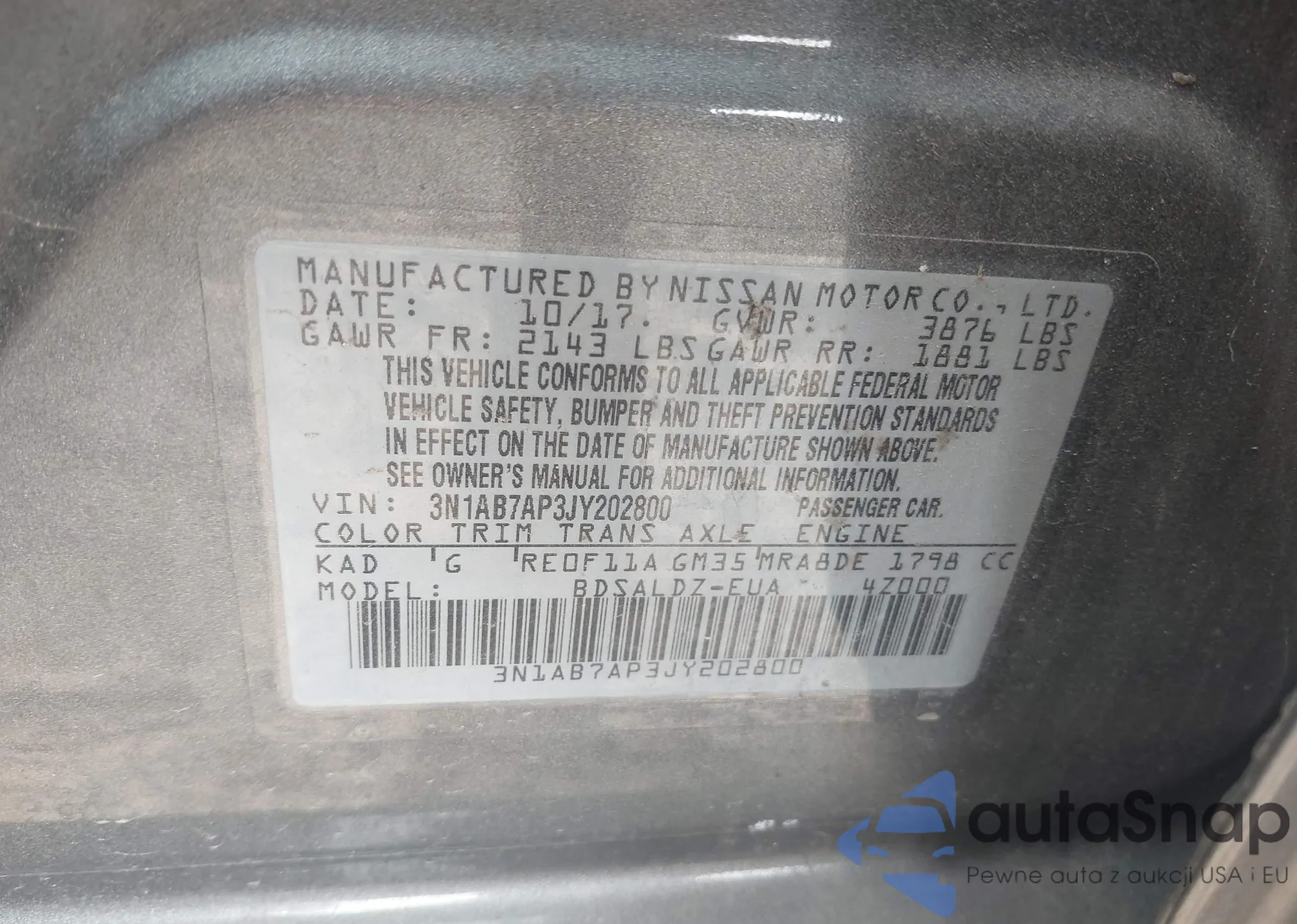 • VIN 3N1AB7AP3JY202800