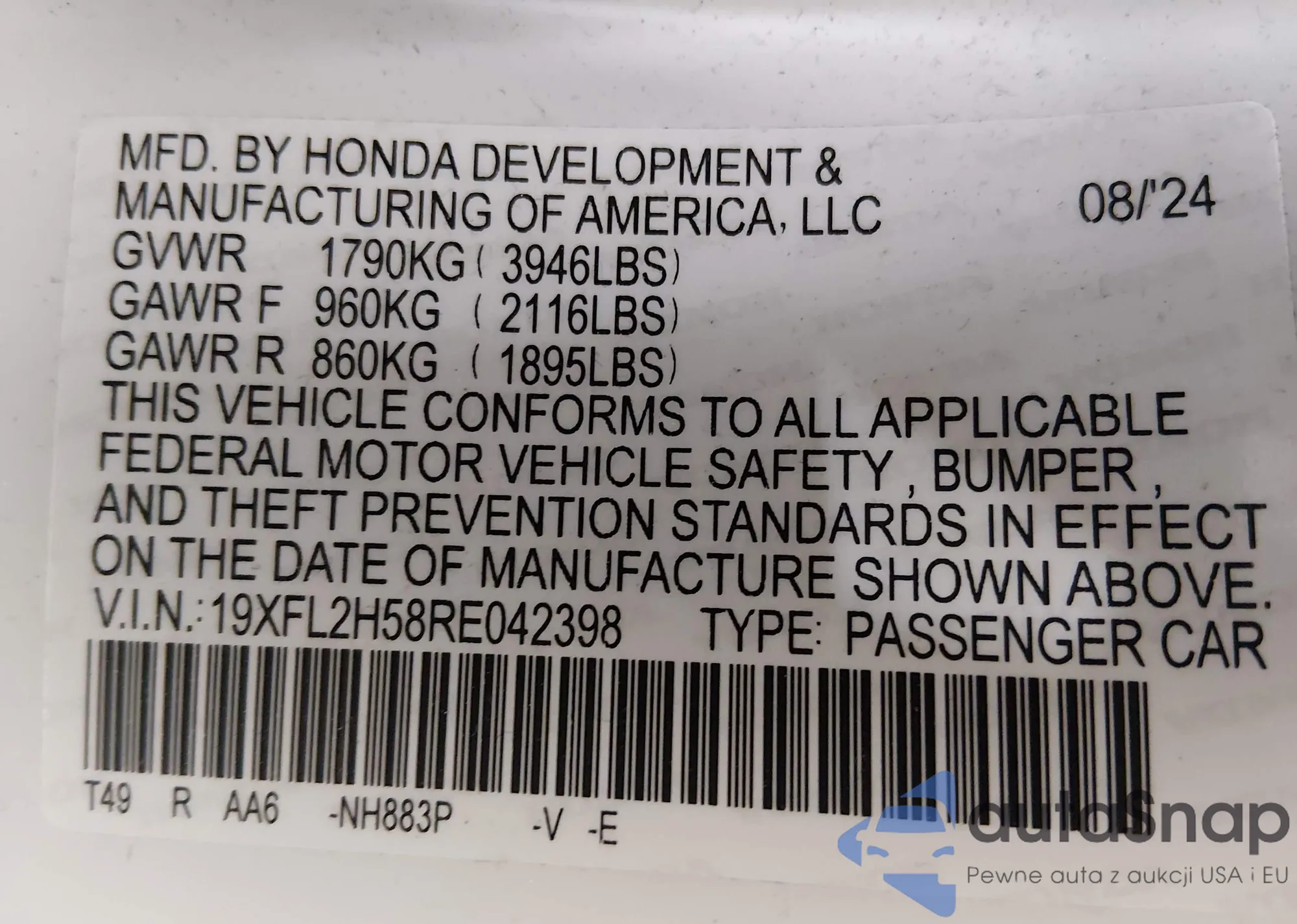 • VIN 3N1AB8DV7SY358307