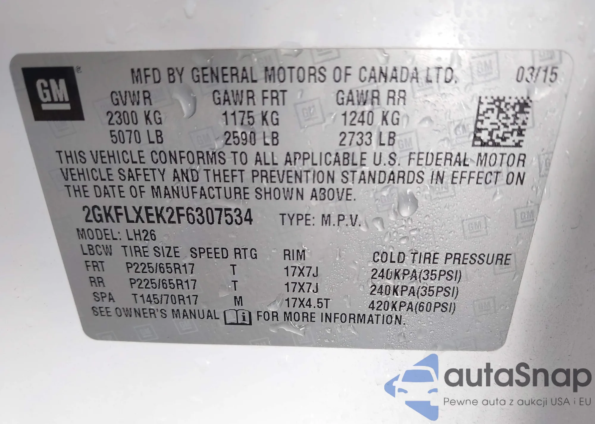 • VIN 2GKFLXEK2F6307534
