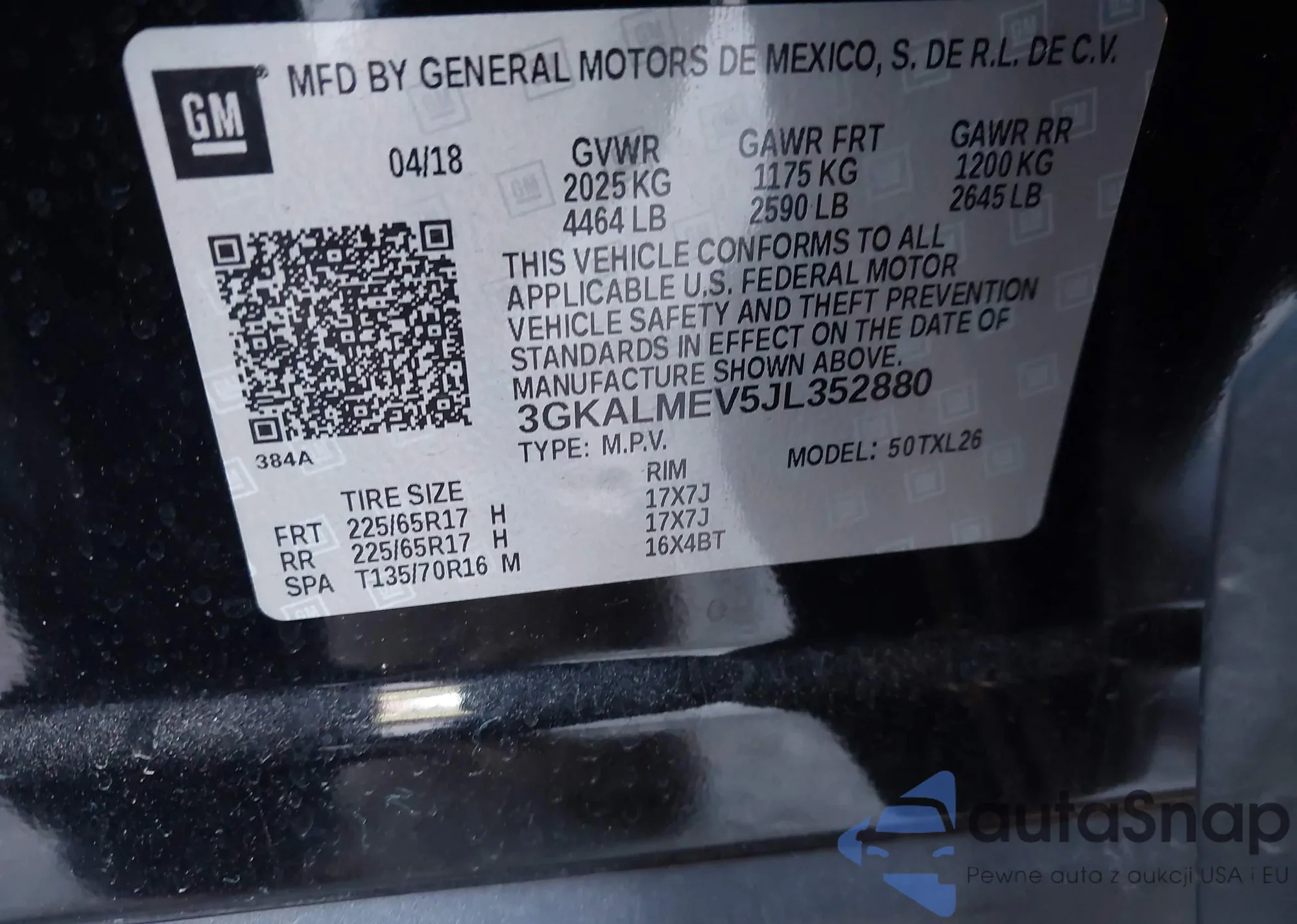 • VIN 3GKALMEV5JL352880