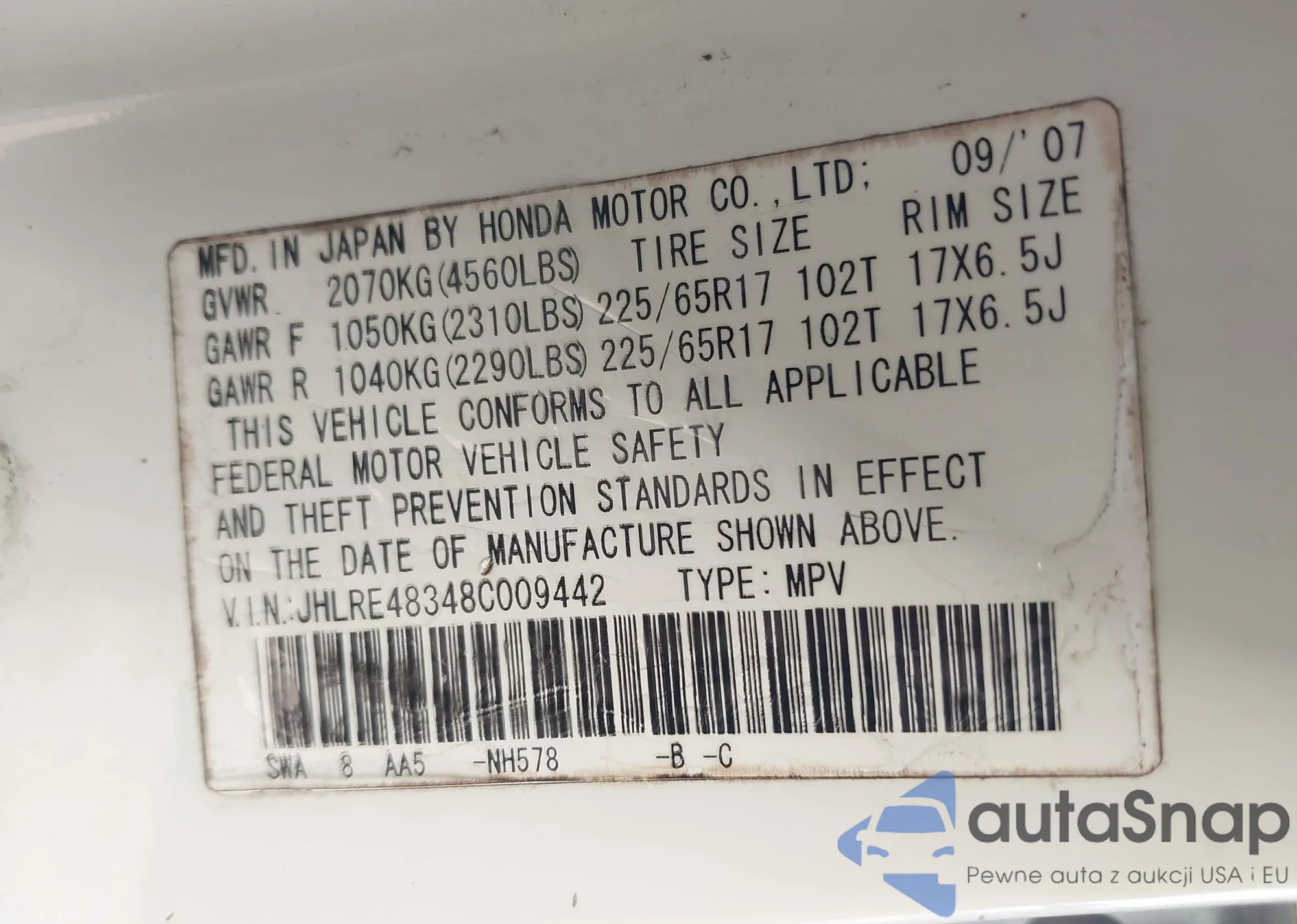 • VIN JHLRE48348C009442