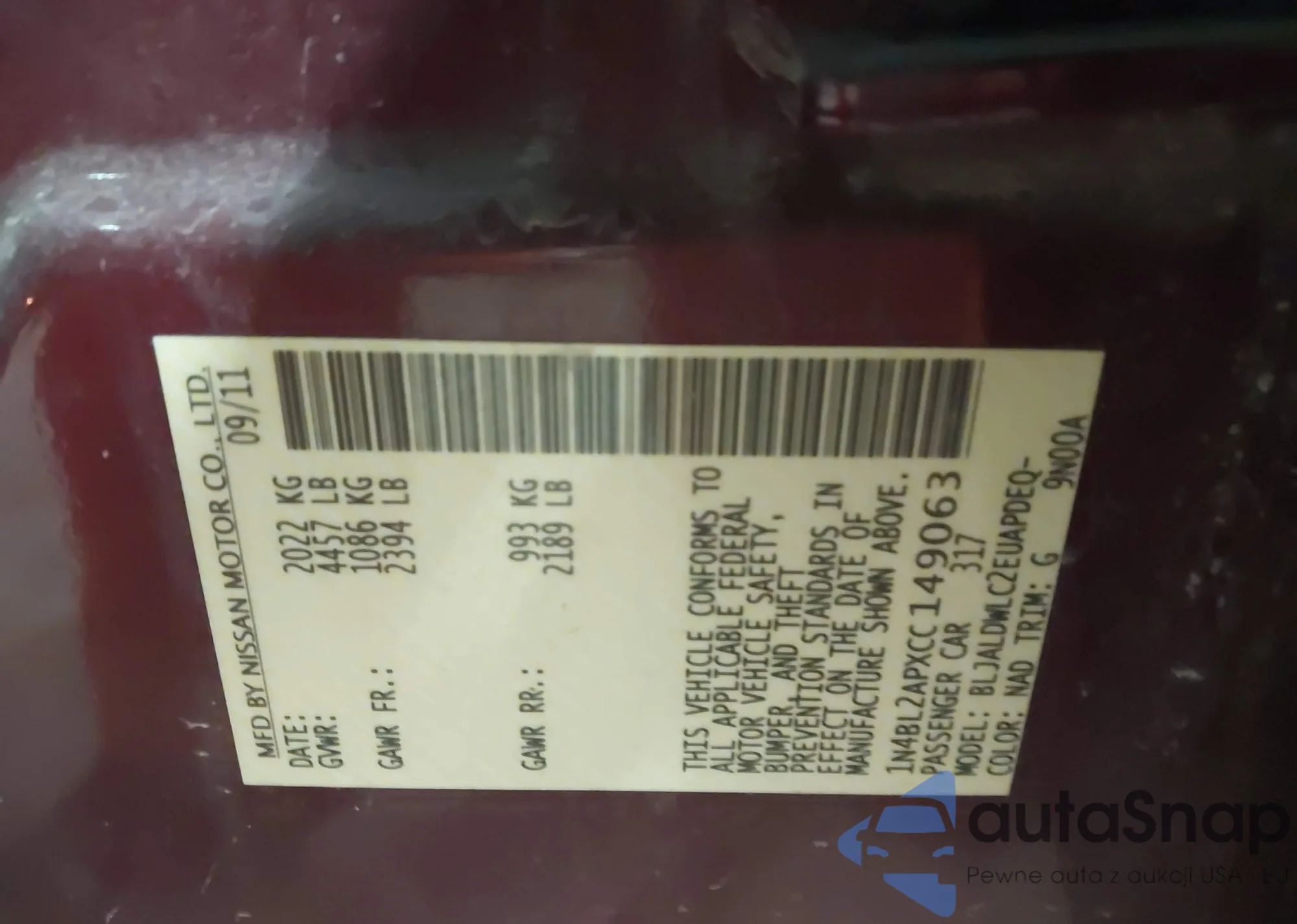 LOT: 43987417 VIN: 5N1AL0MN9EC508034