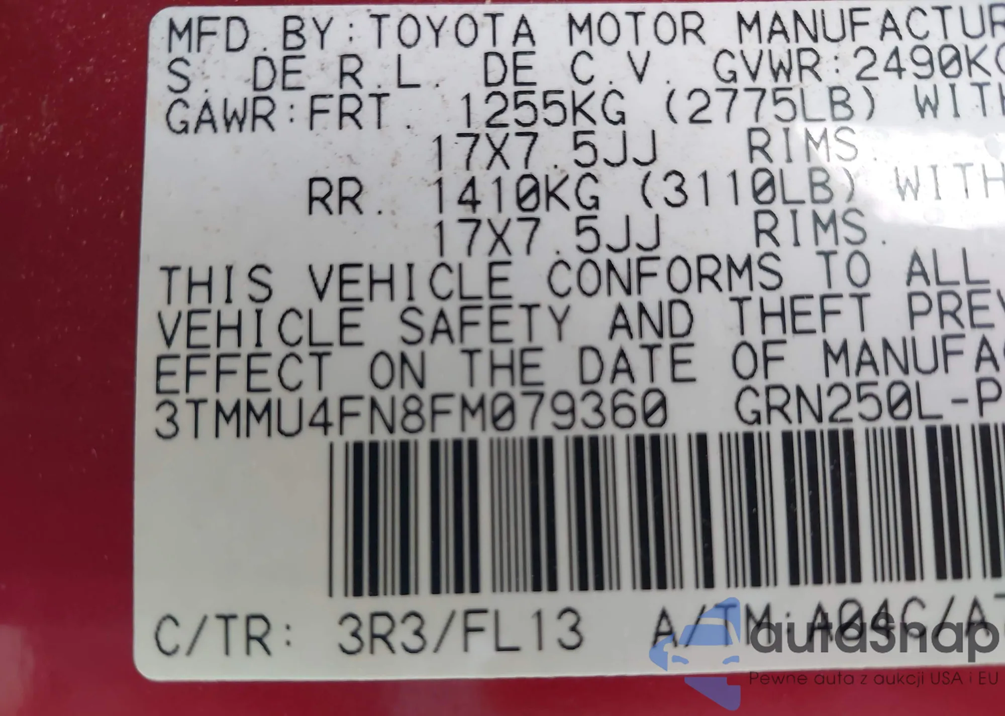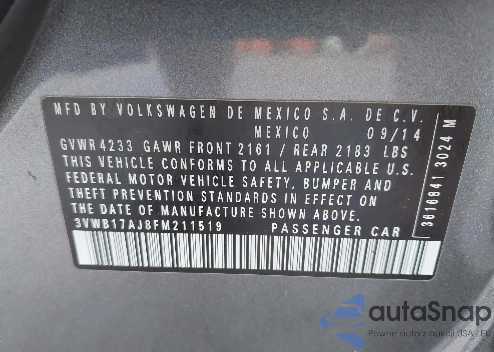 • VIN 3VWB17AJ8FM211519