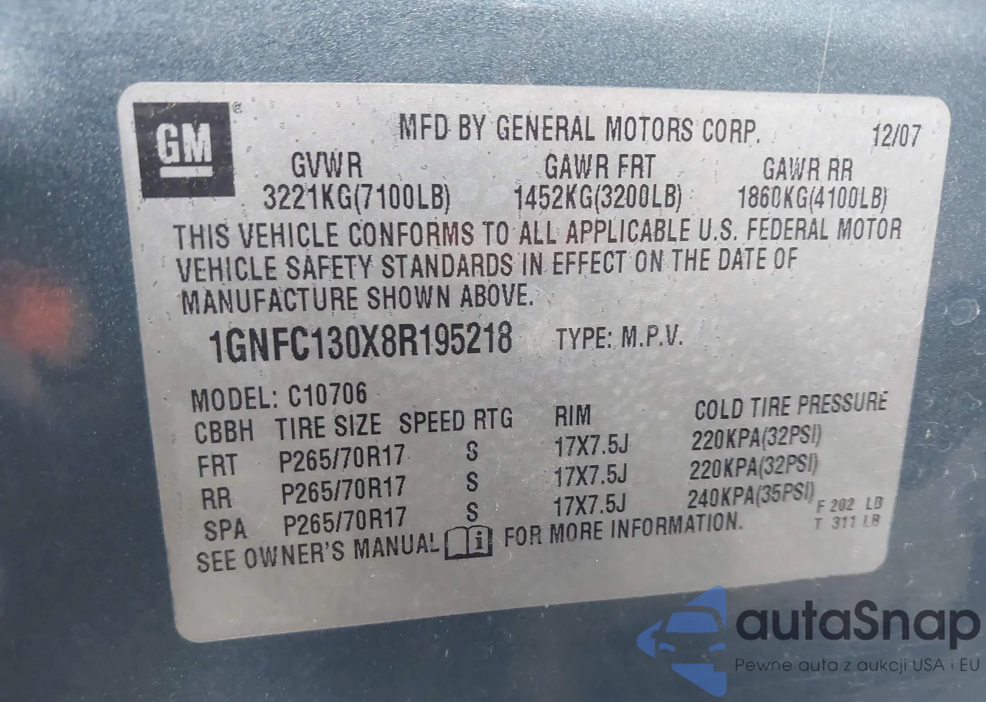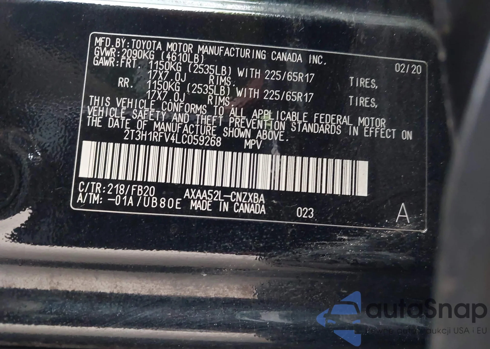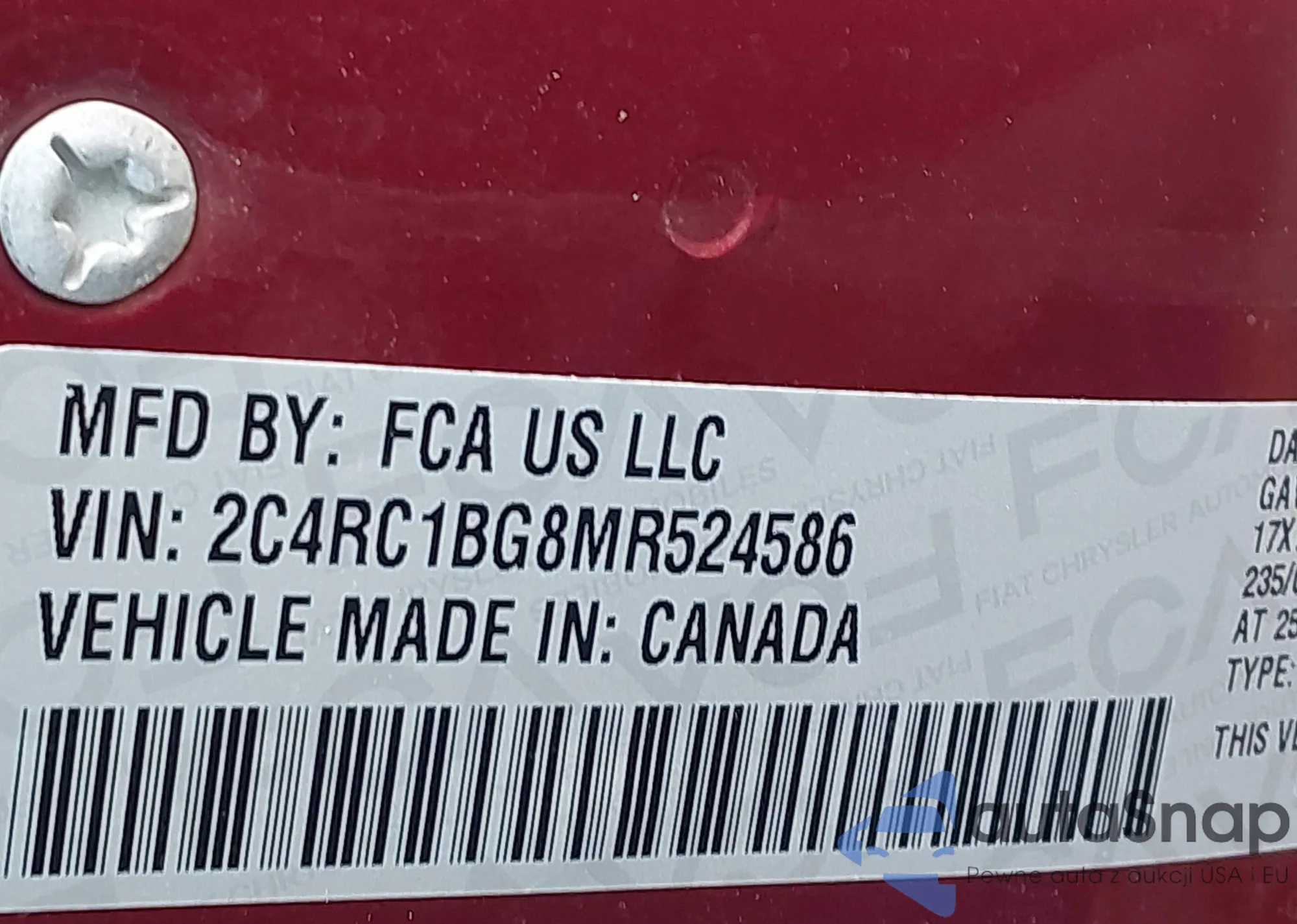 • VIN 1C4RDHAG7LC223337