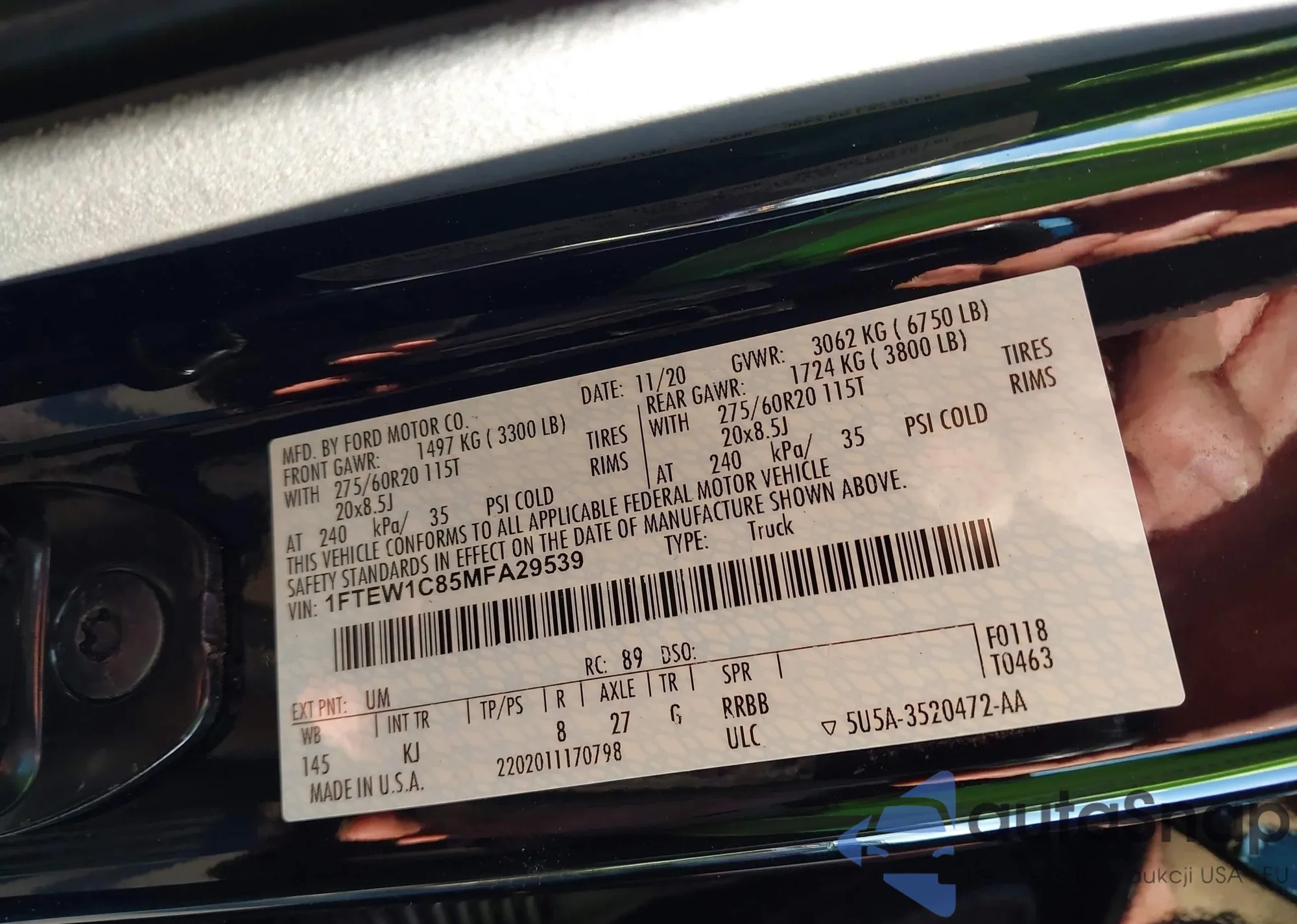 • VIN 1FTEW1C85MFA29539