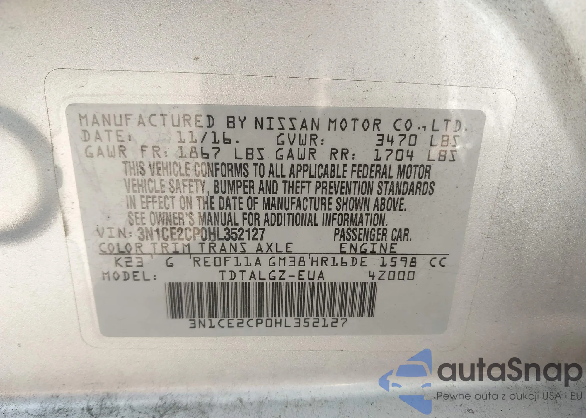 • VIN 3N1CE2CP0HL352127