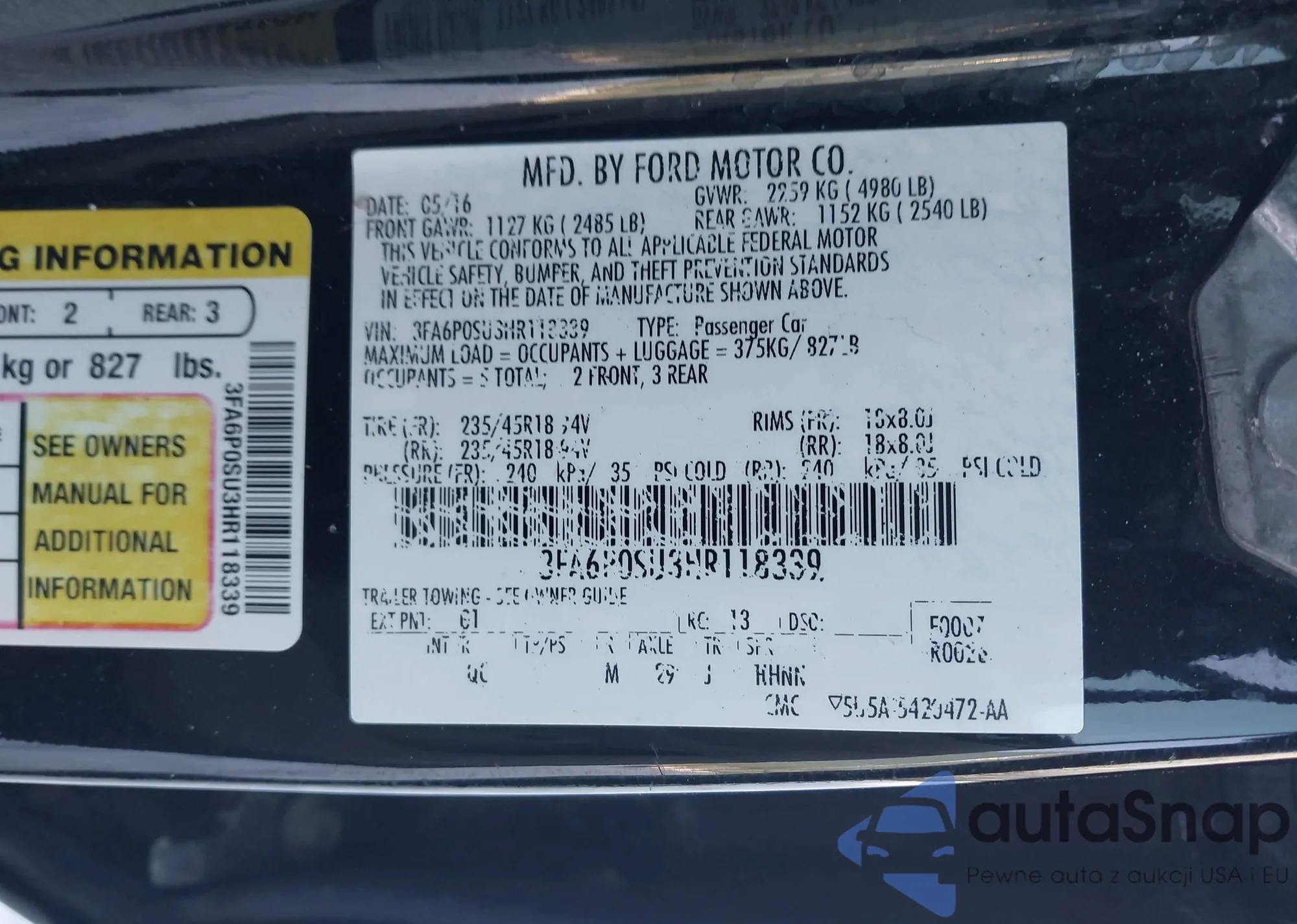 • VIN 3FA6P0SU3HR118339