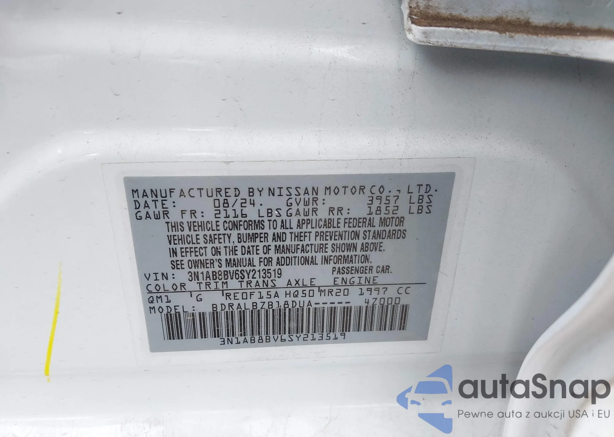 • VIN 3N1AB8BV6SY213519