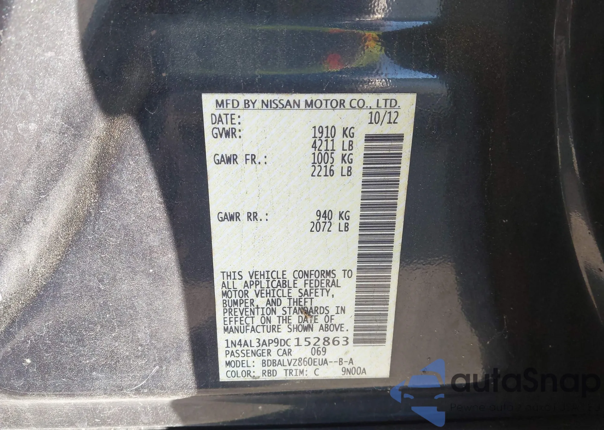 • VIN 1N4AL3AP9DC152863