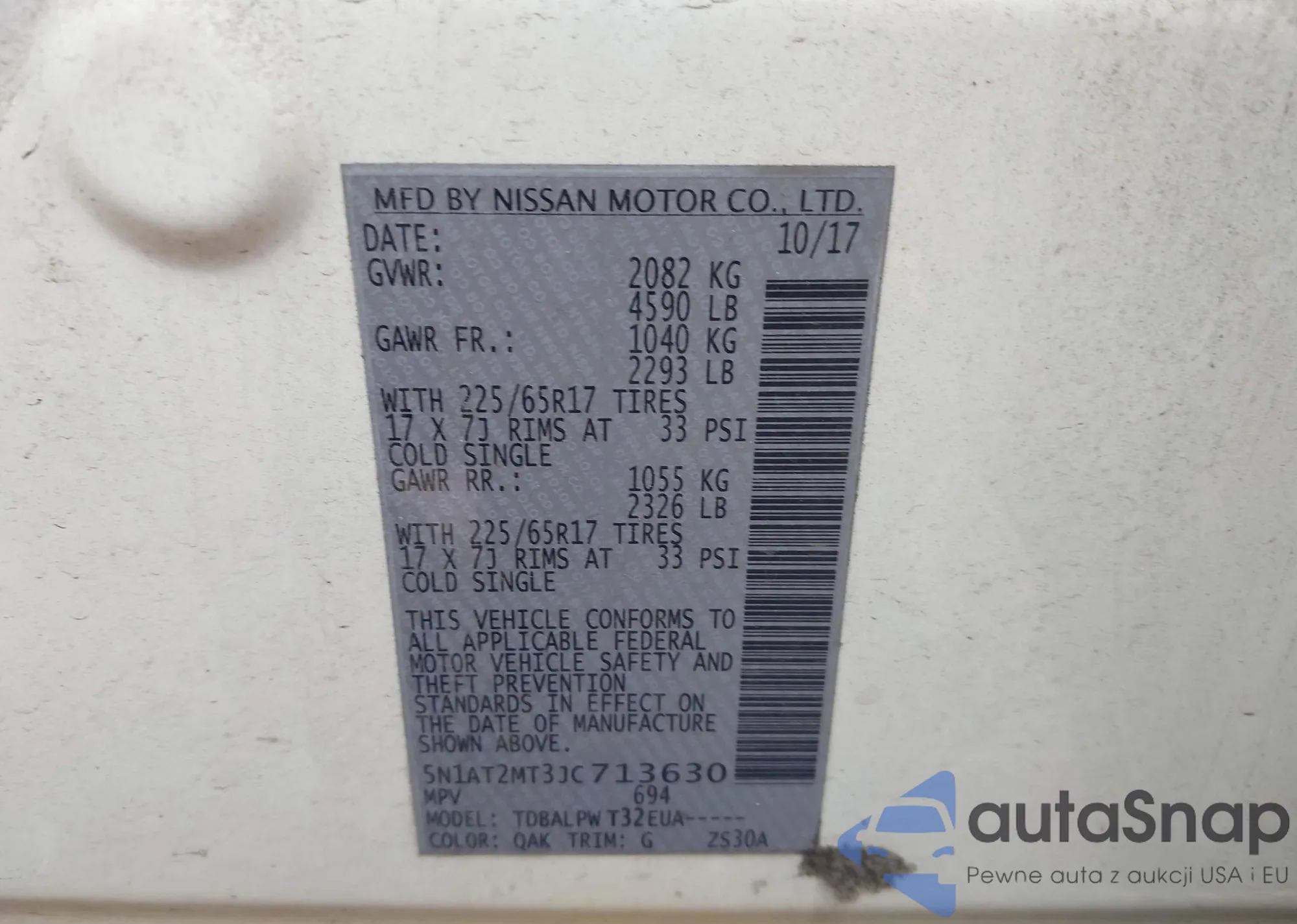 LOT: 44126092 VIN: 5N1AT2MT3JC713630