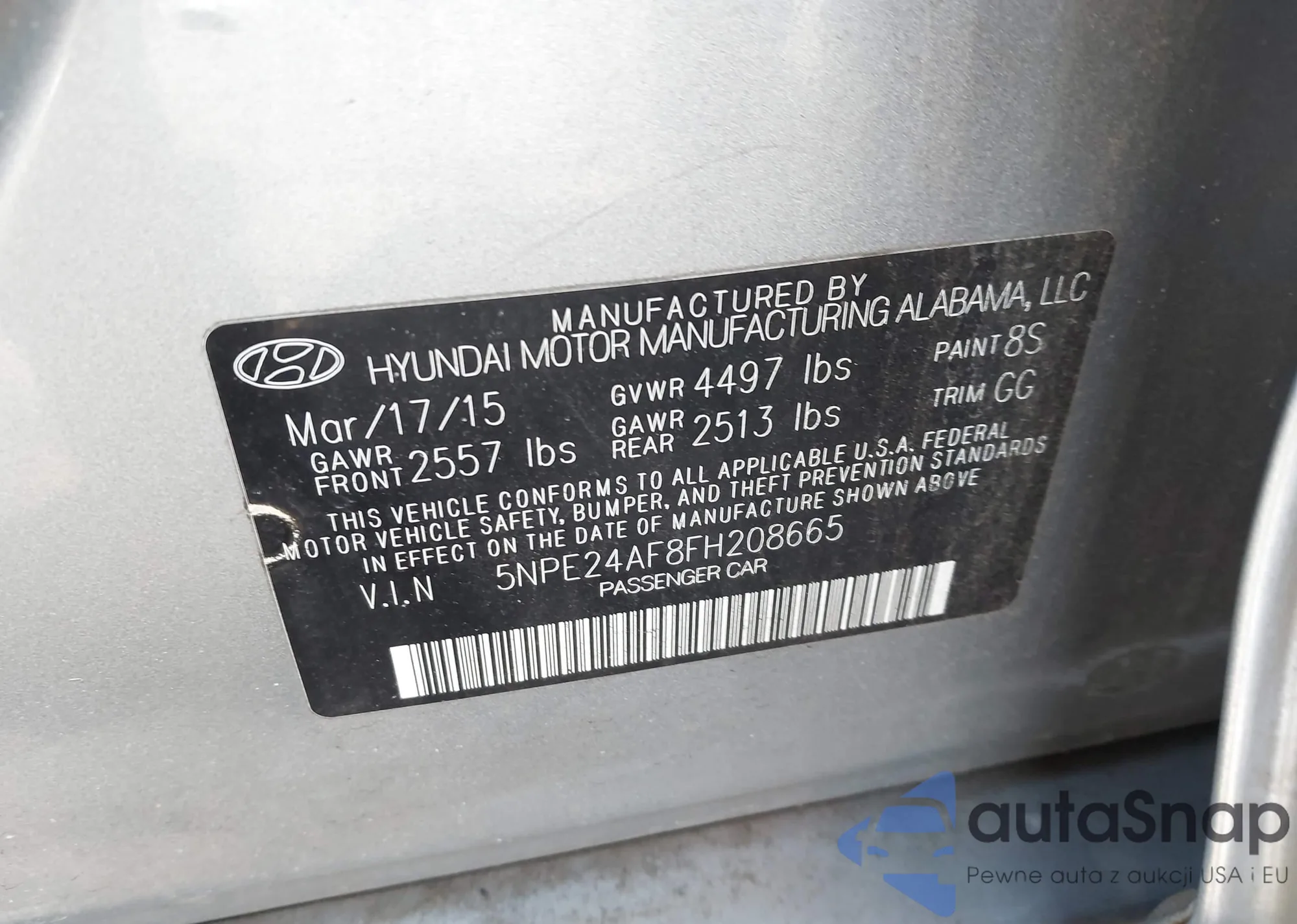 LOT: 43917907 VIN: 5NPEB4AC7BH275242