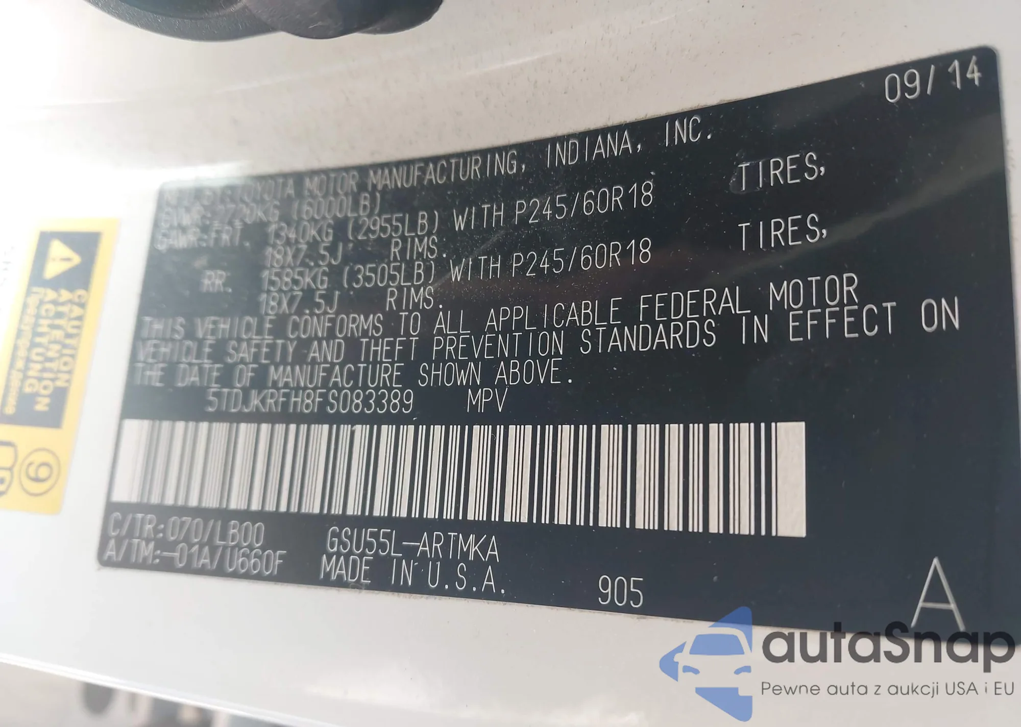 • VIN 5TDJKRFH8FS083389