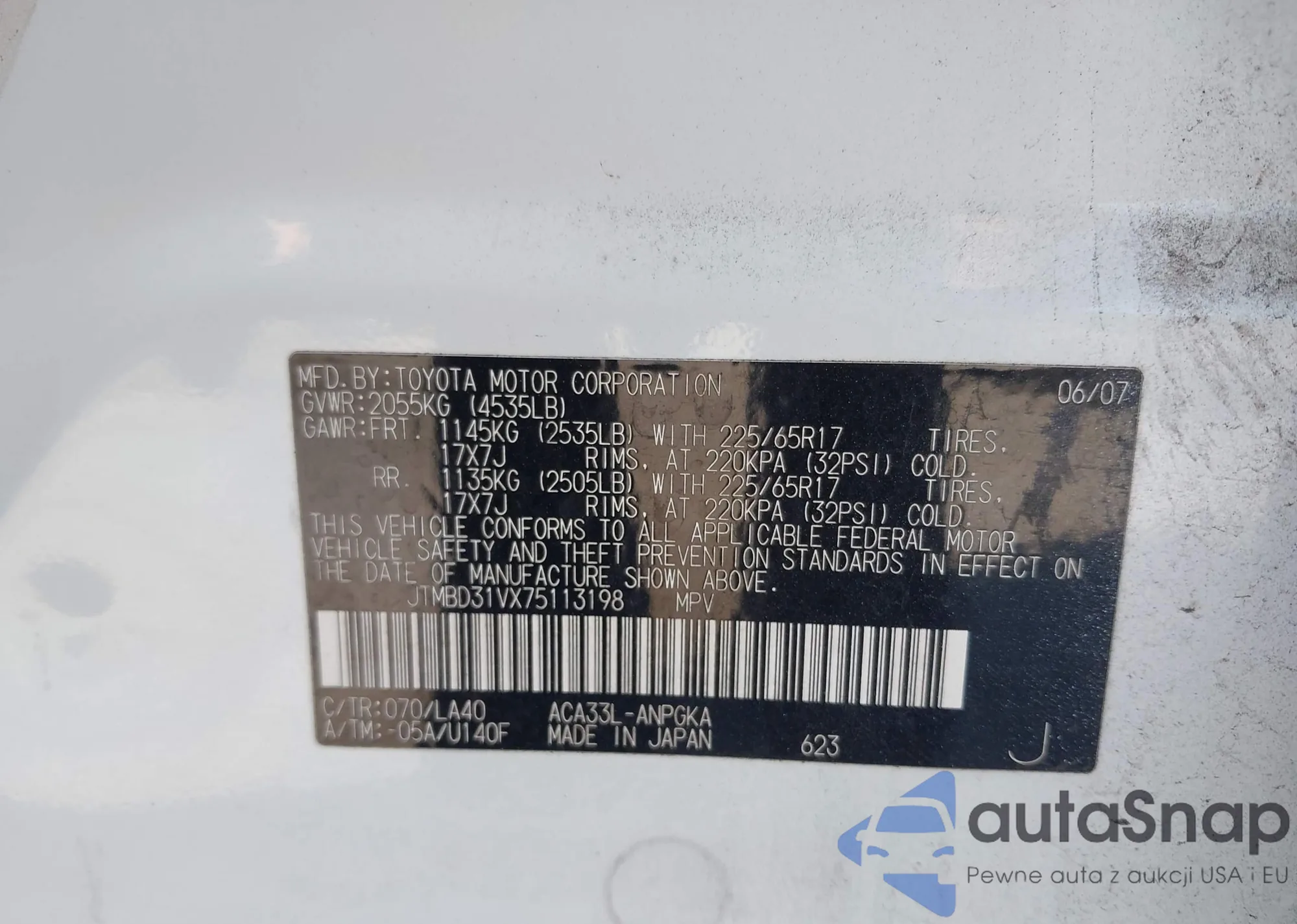• VIN JTMBD31VX75113198
