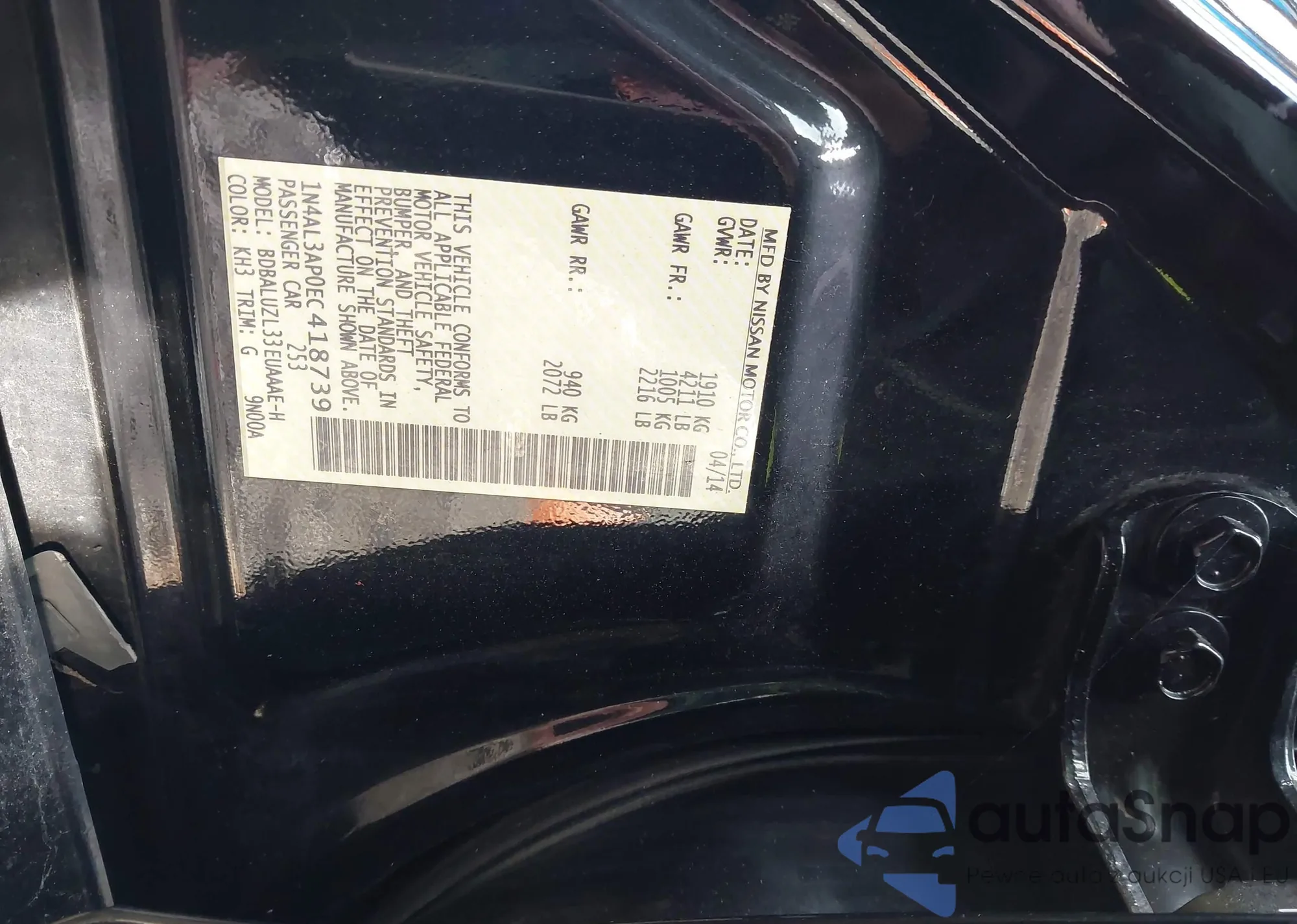 LOT: 43834551 VIN: 1N4AL3AP0EC418739
