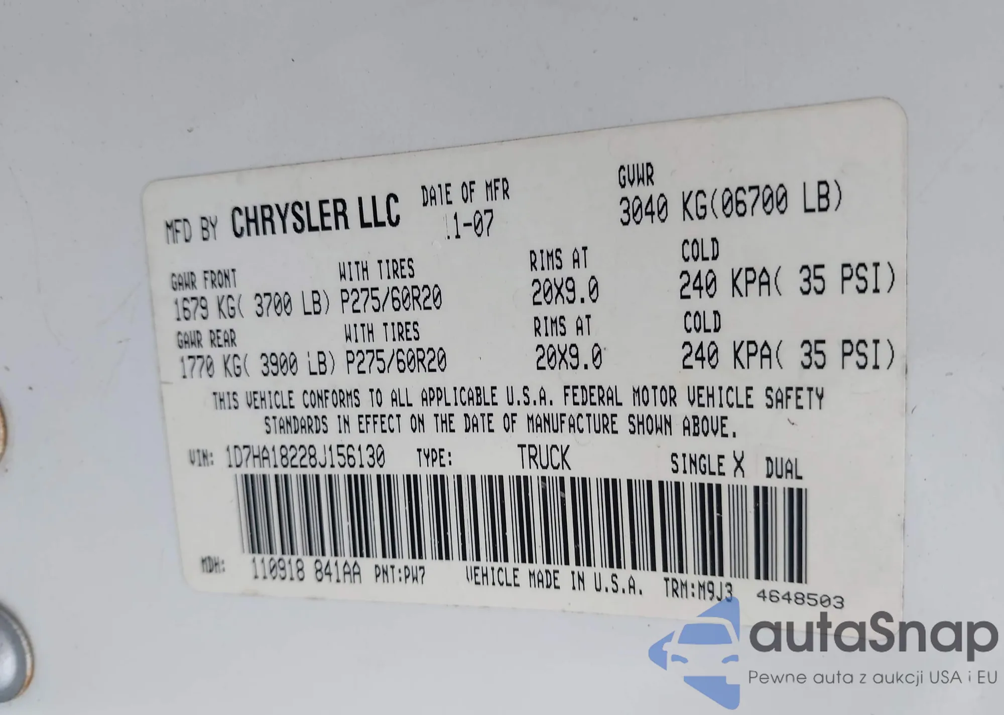 • VIN 1D7HA18228J156130