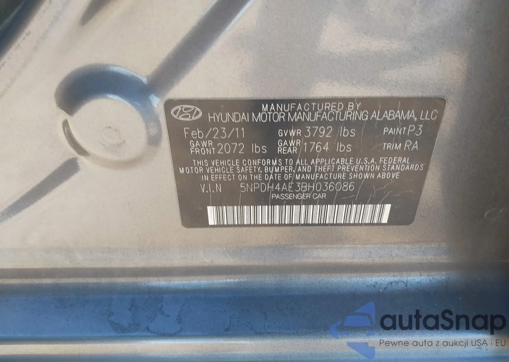 • VIN 5NPDH4AE3BH036086