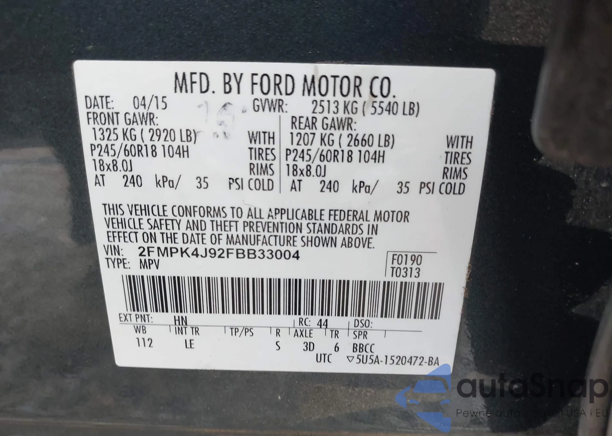 LOT: 44132424 VIN: 1FMFU20546LA69198