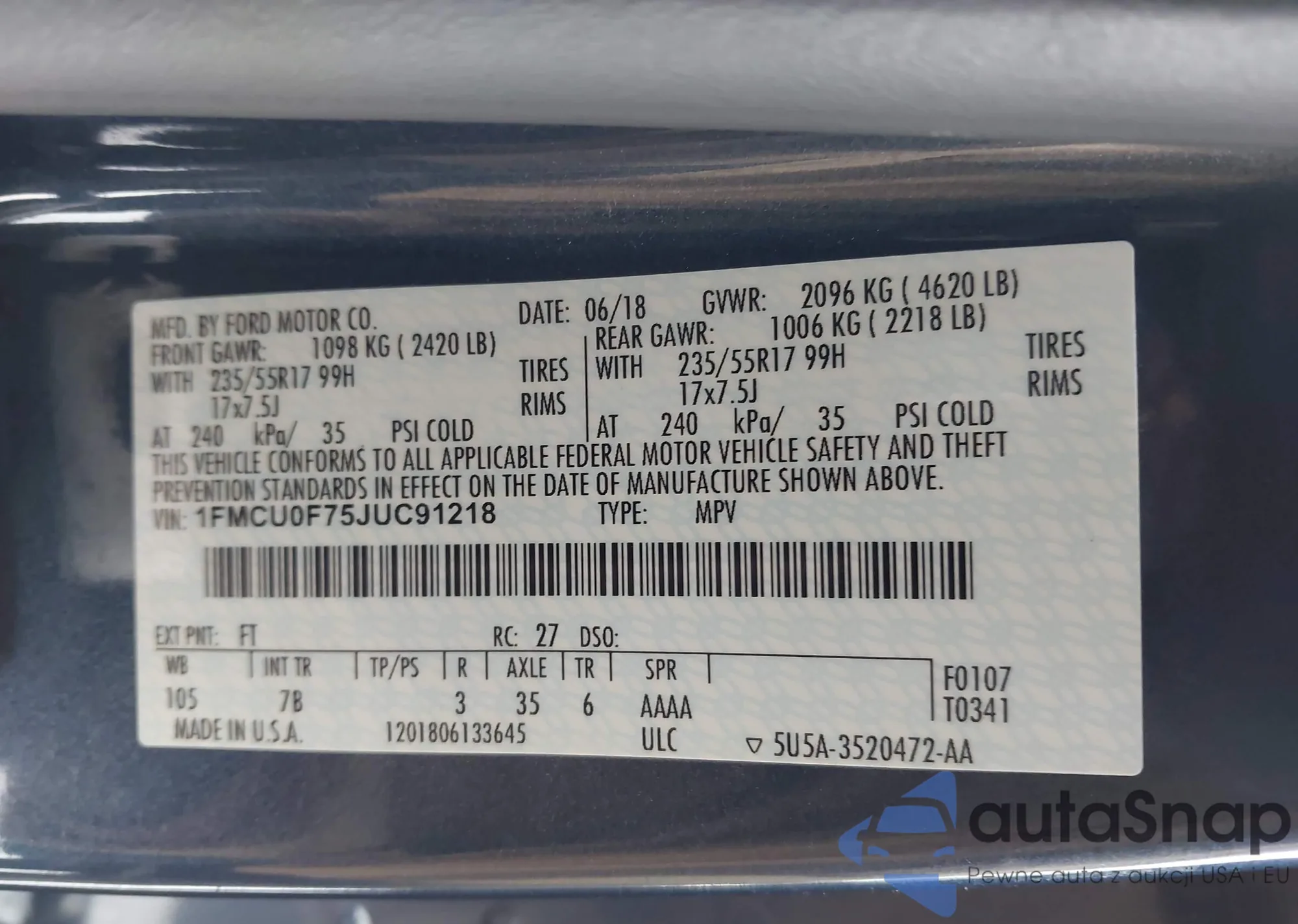 • VIN 1FMCU0F75JUC91218
