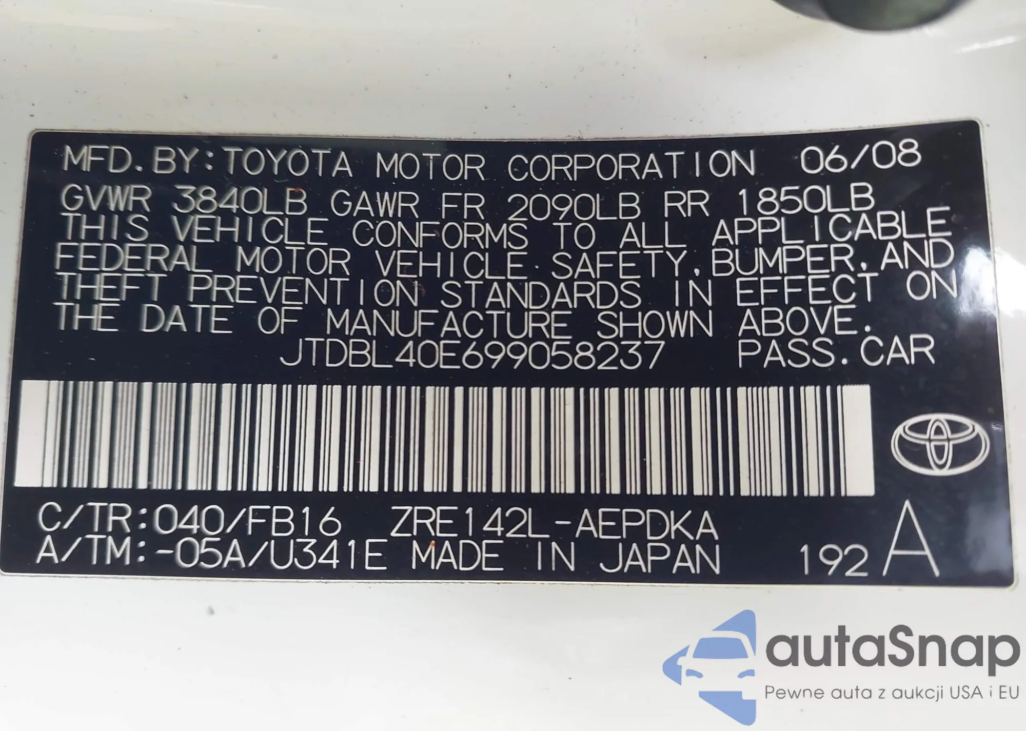 • VIN WDDGF5EB0AR124440