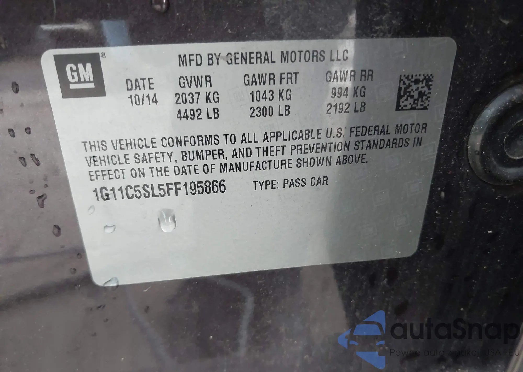 LOT: 44066000 VIN: 2G1WT57K191281371