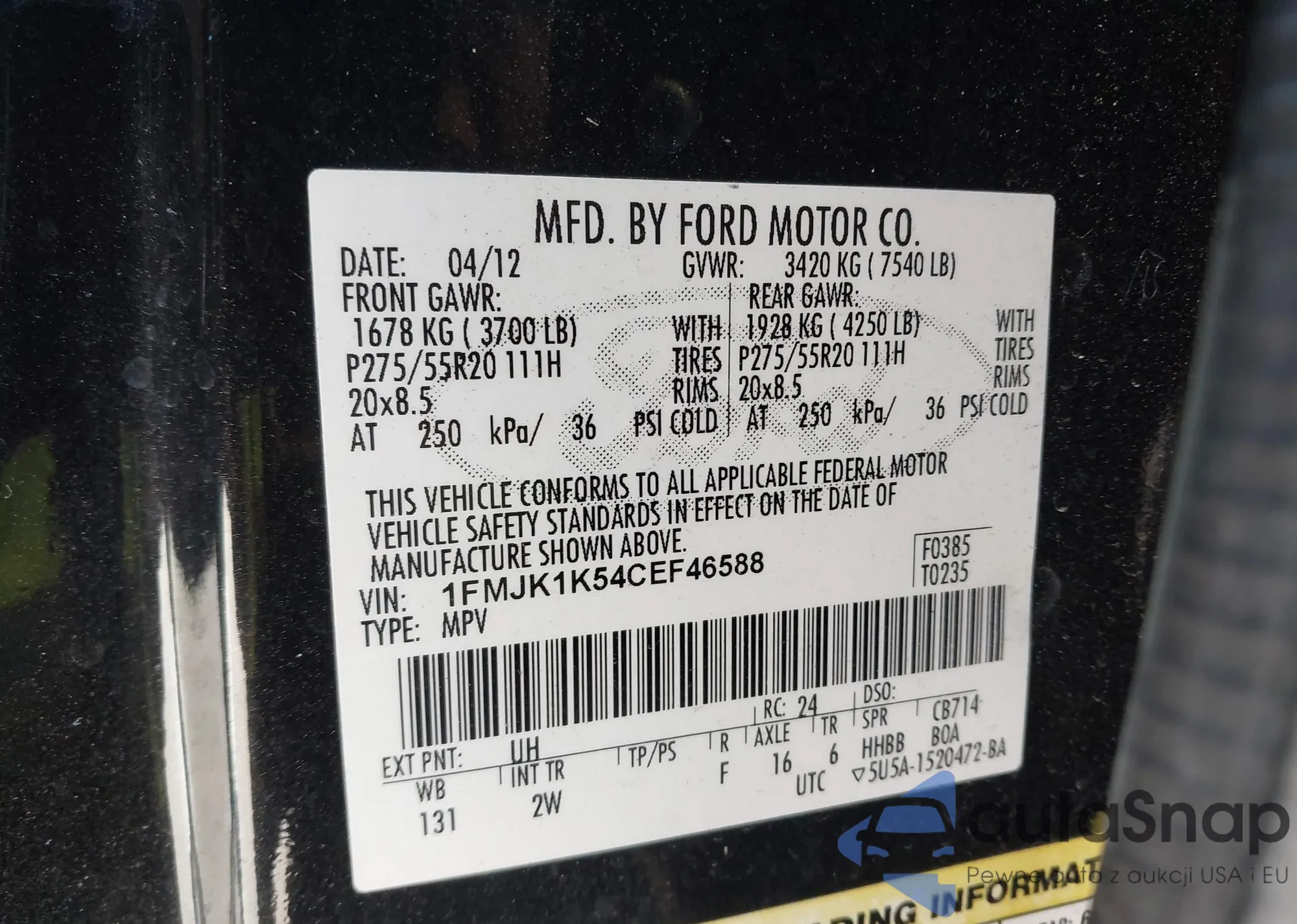 • VIN 1FMJK1K54CEF46588