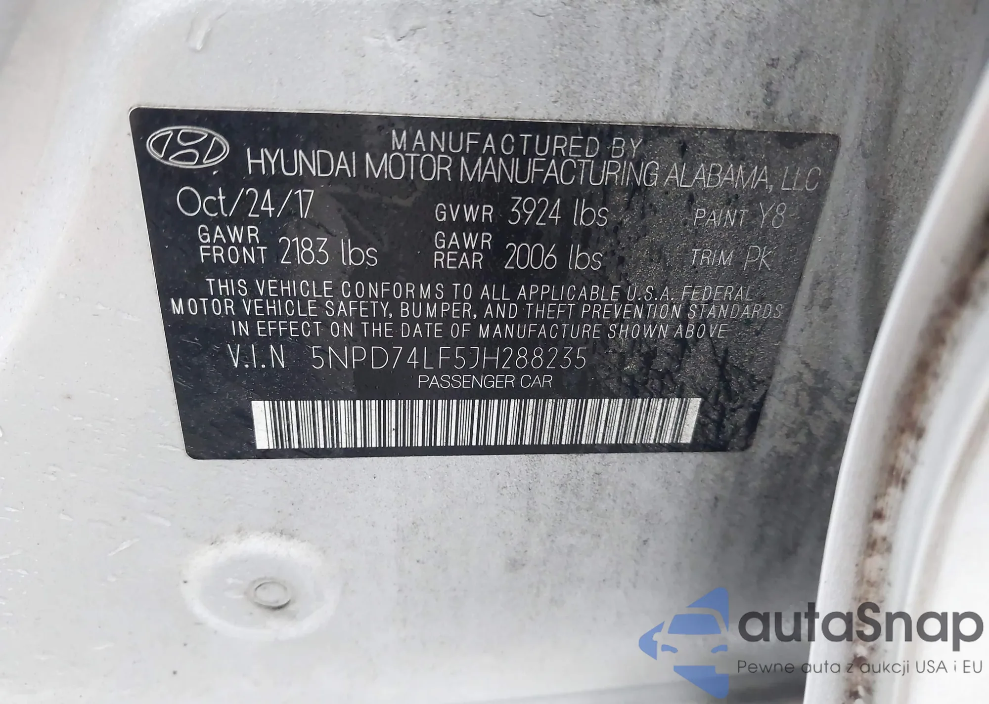 LOT: 43772621 VIN: 5NPD74LF5JH288235