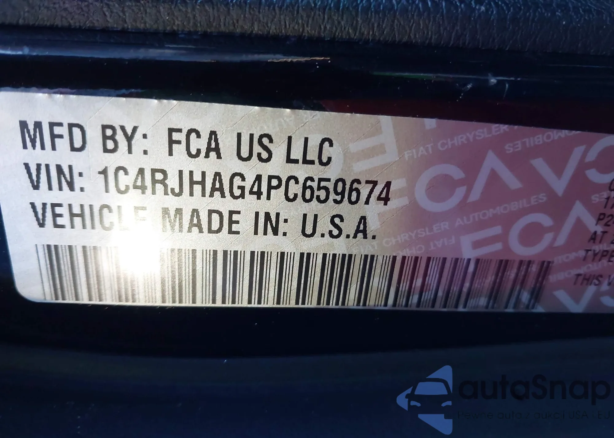• VIN 1C4RJHAG4PC659674