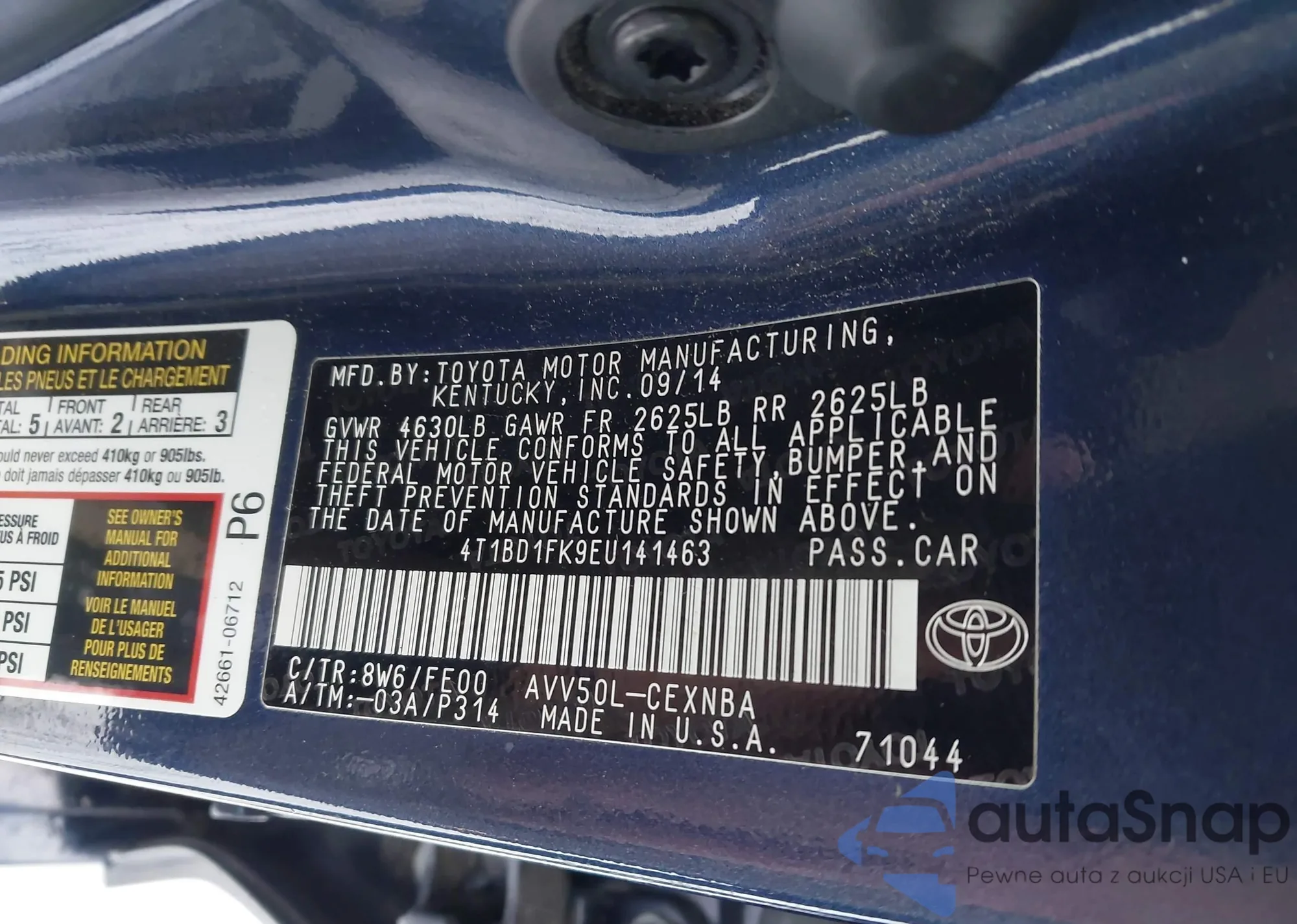 • VIN 4T1BD1FK9EU141463