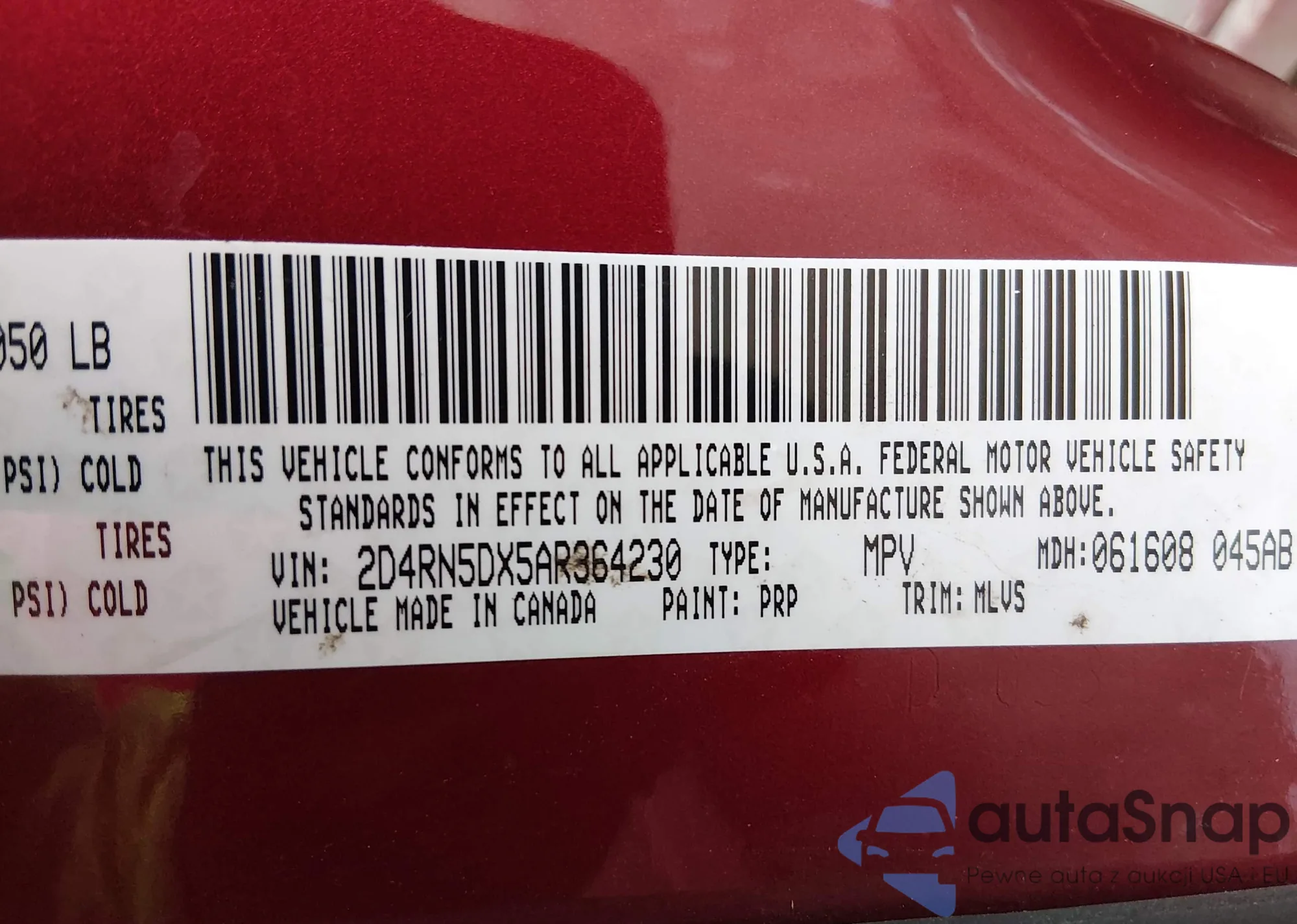• VIN 2D4RN5DX5AR364230