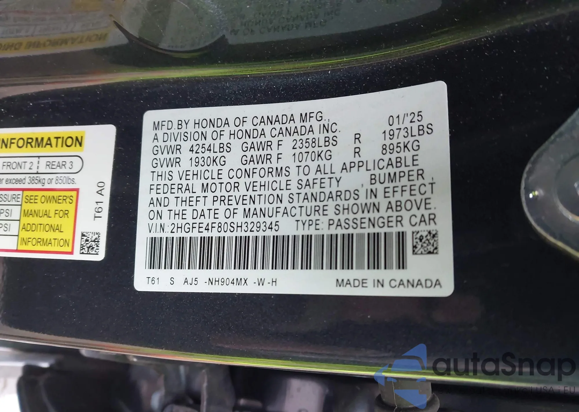 LOT: 44193173 VIN: SHHFK7H9XHU421655