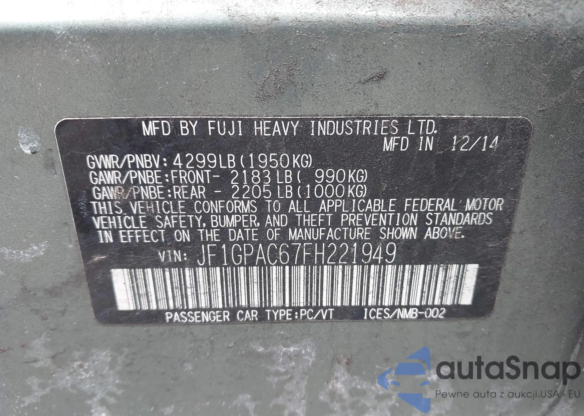 LOT: 44180529 VIN: JF2SJAGC1JH427395