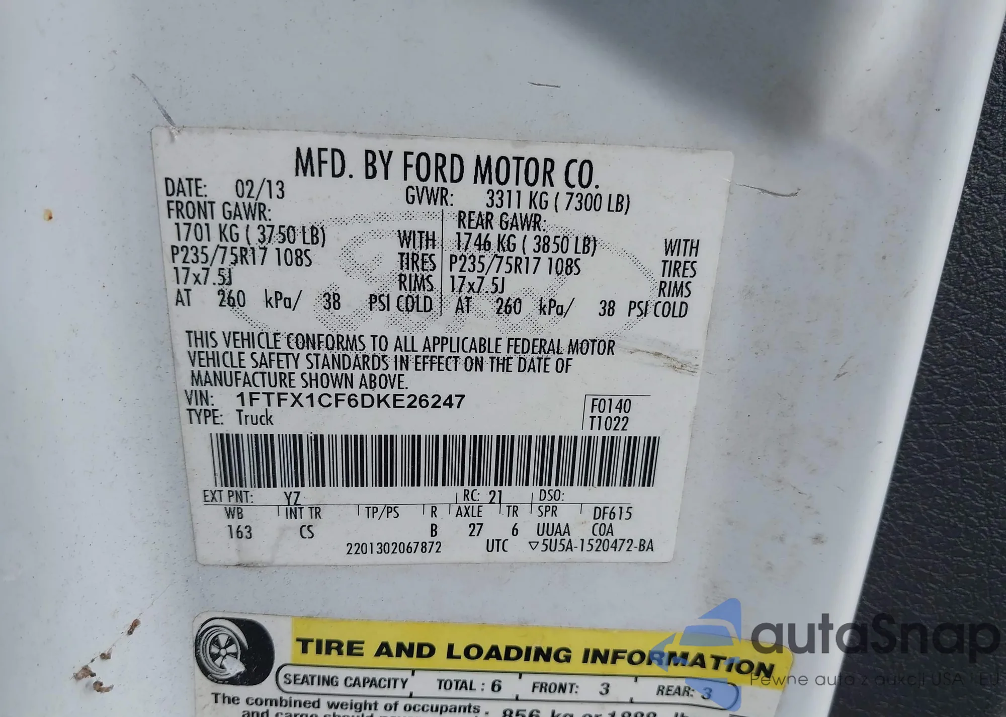 • VIN 1FTFX1CF6DKE26247