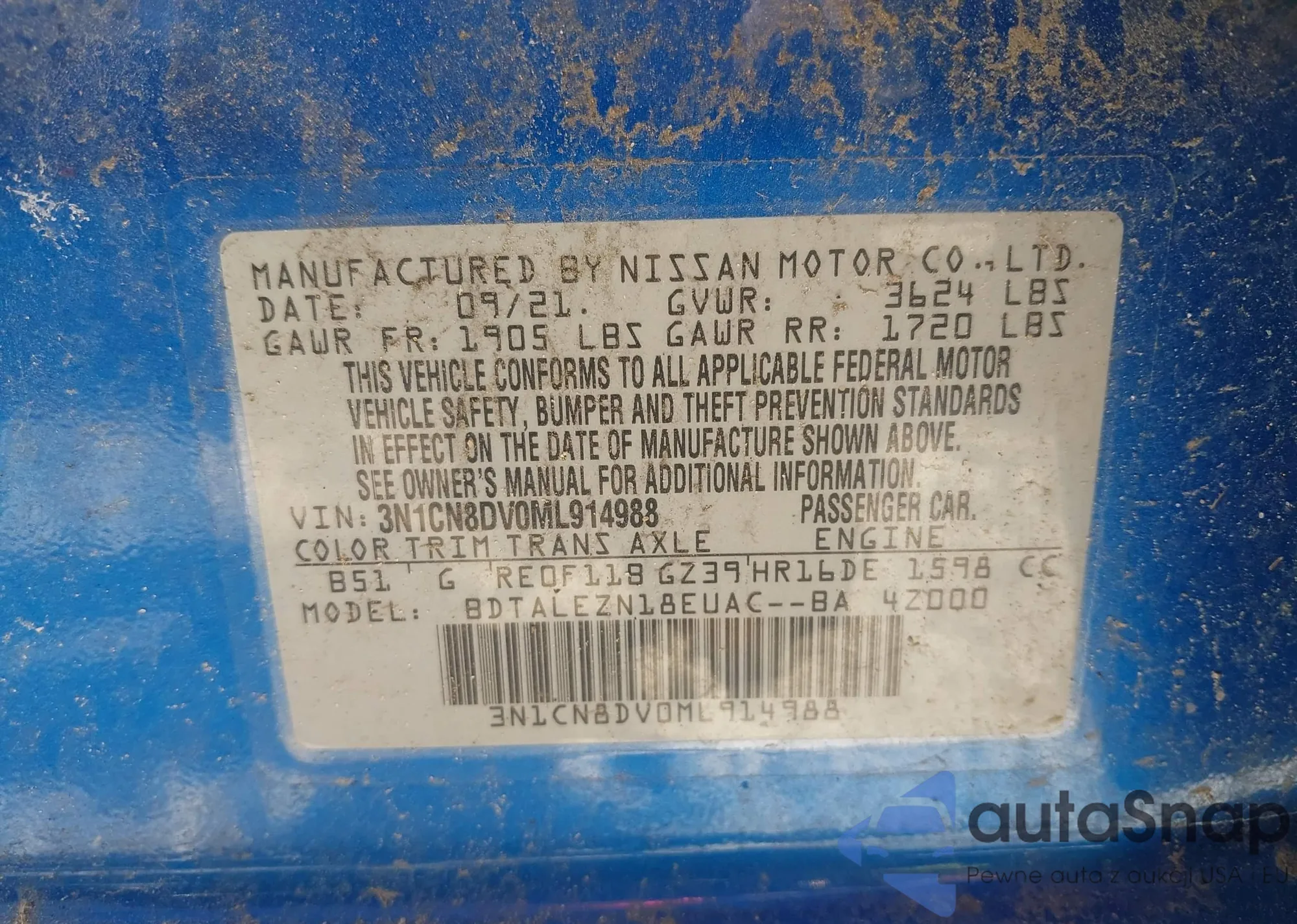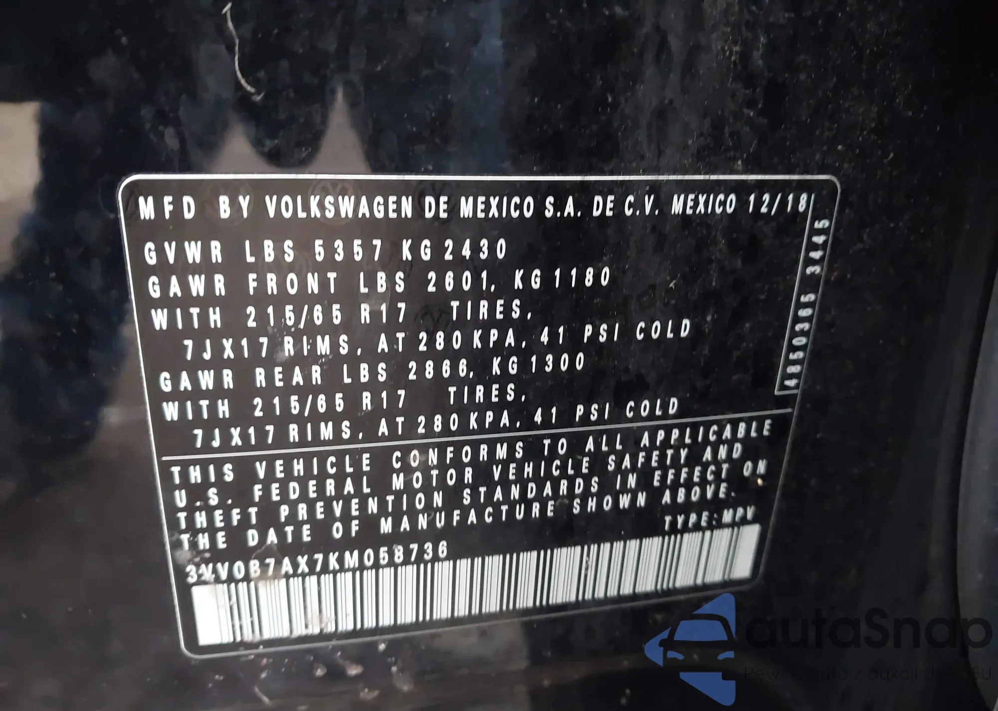 • VIN KL7CJNSB9MB312444
