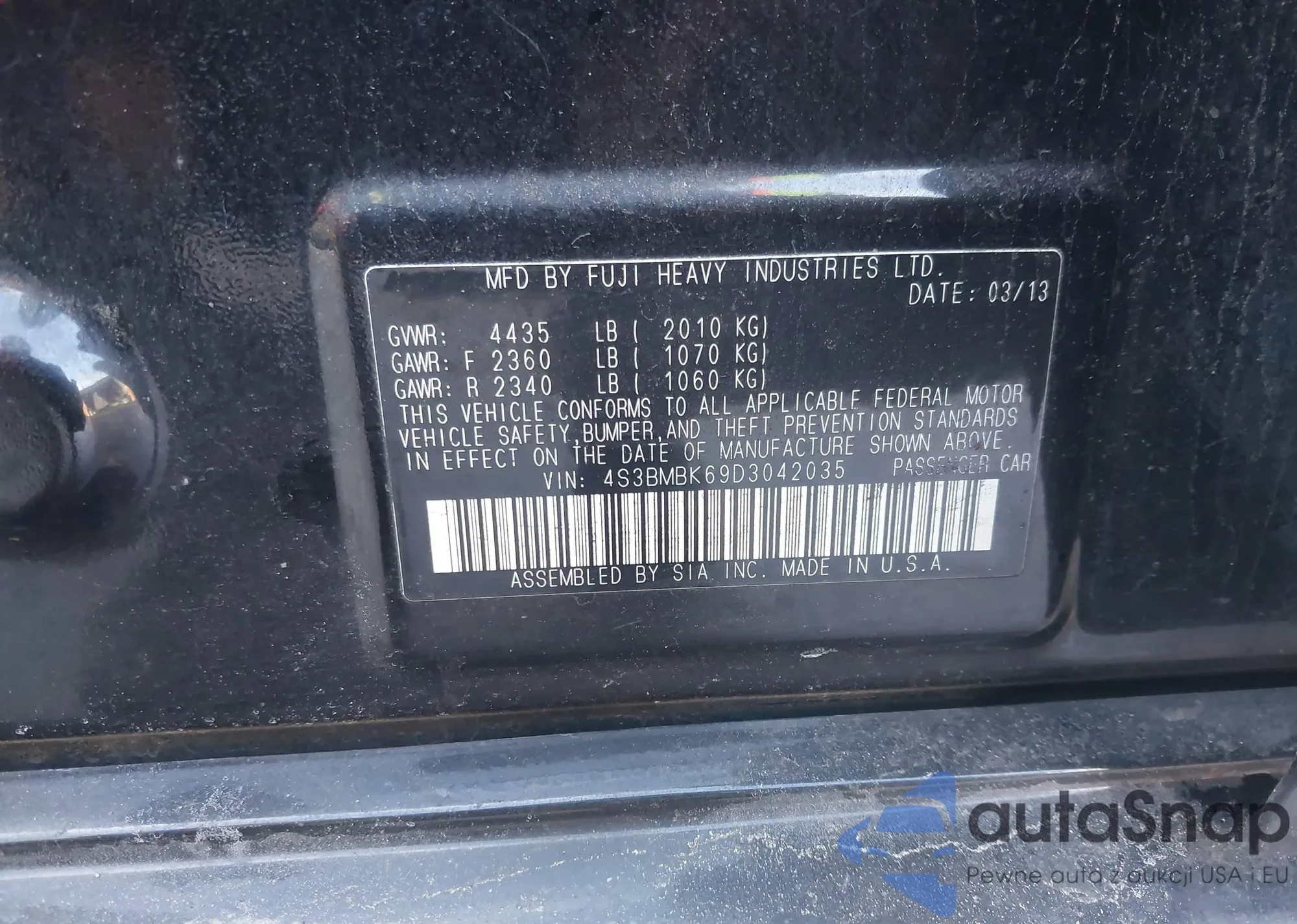 • VIN 4S3BMBK69D3042035