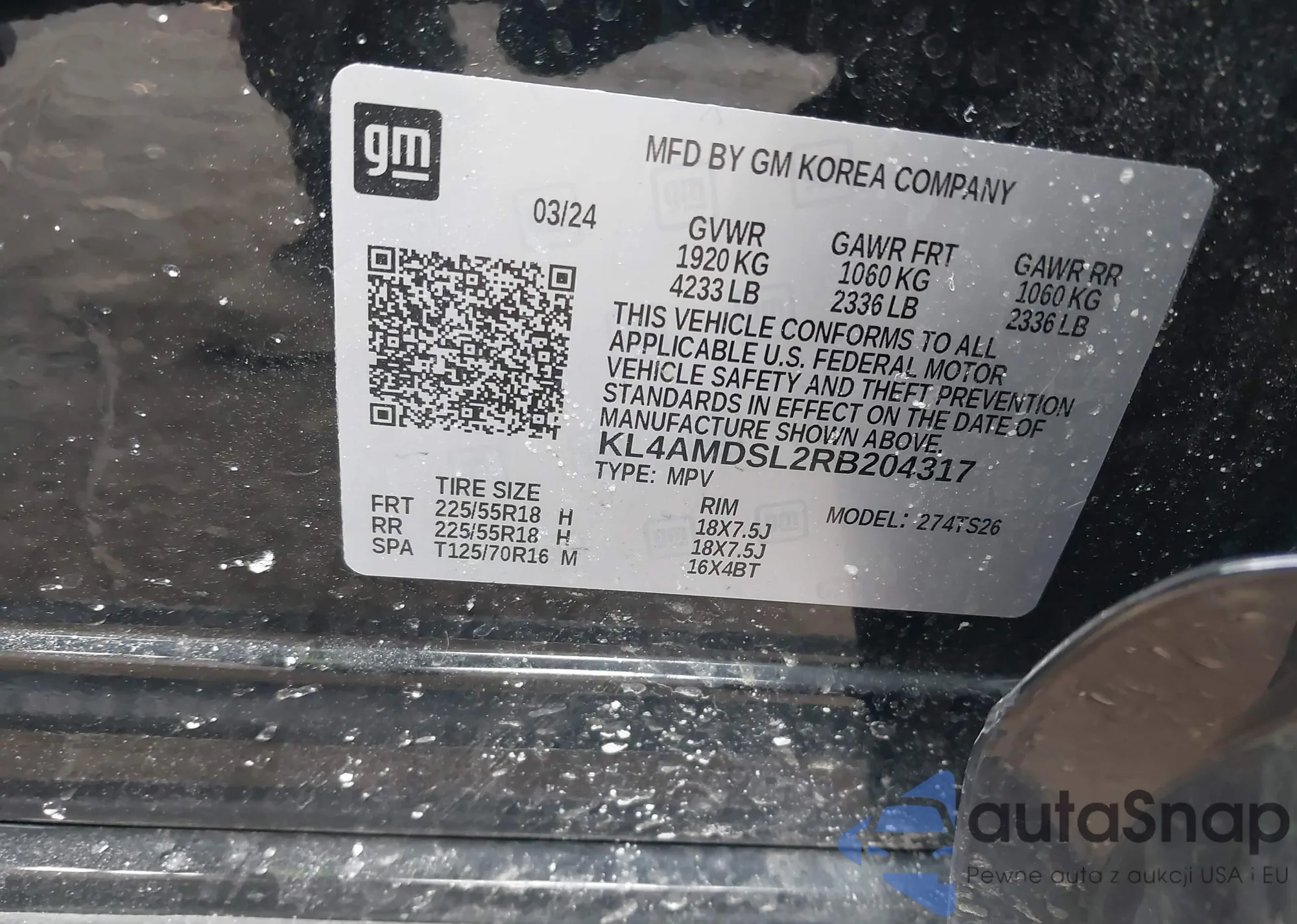 • VIN KL4AMDSL2RB204317