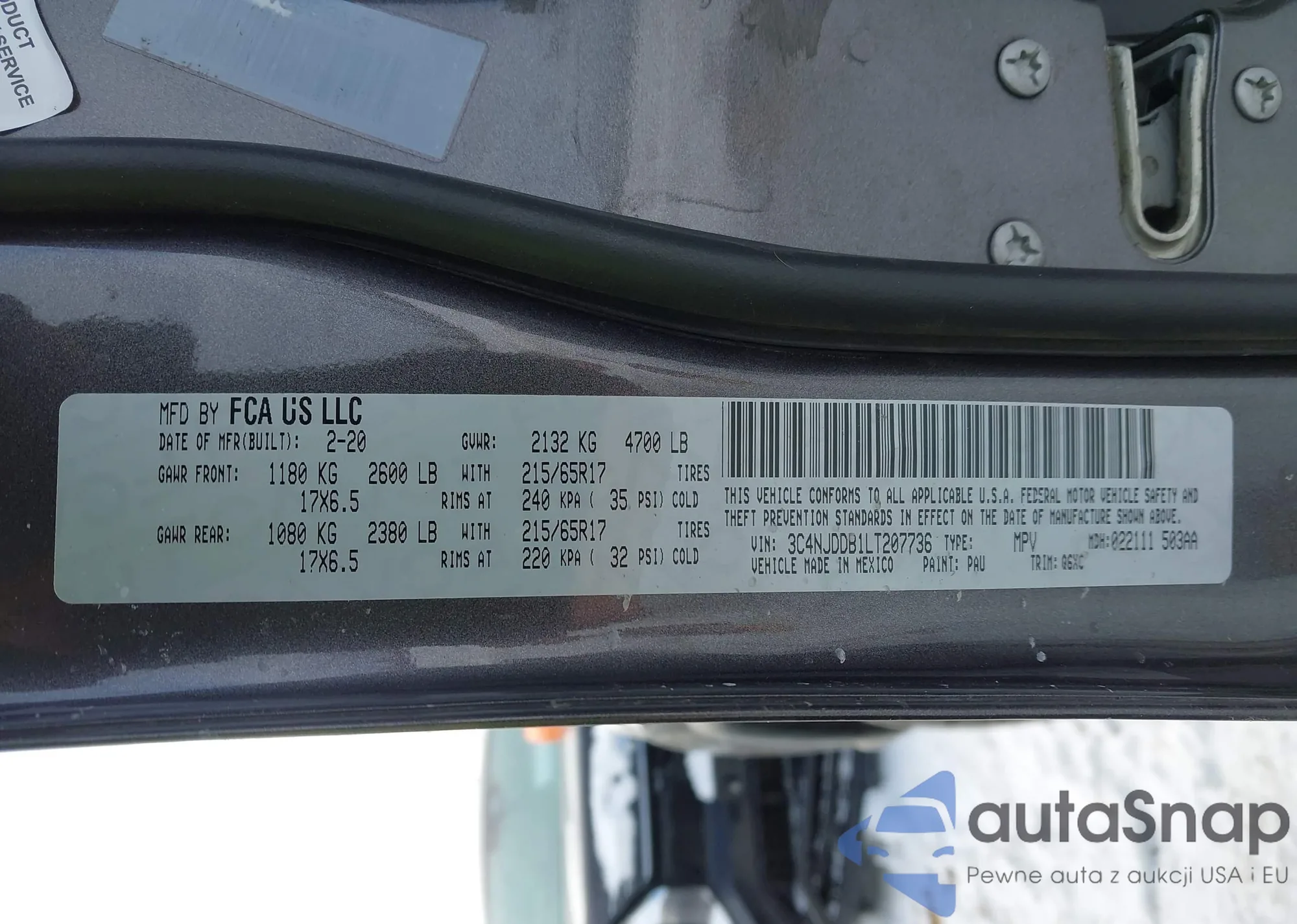LOT: 43824483 VIN: 3C4NJDDB1LT207736