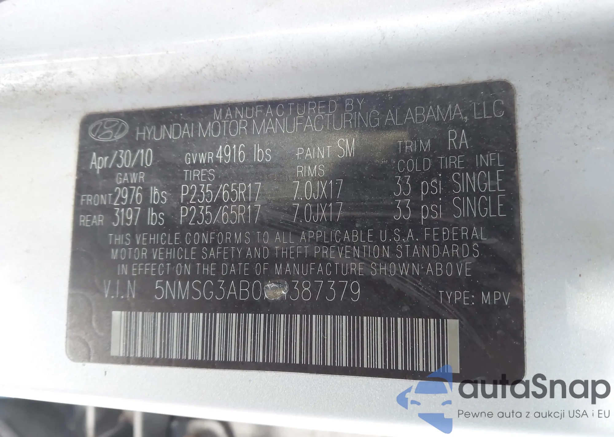 • VIN 5FNRL5H99DB001850