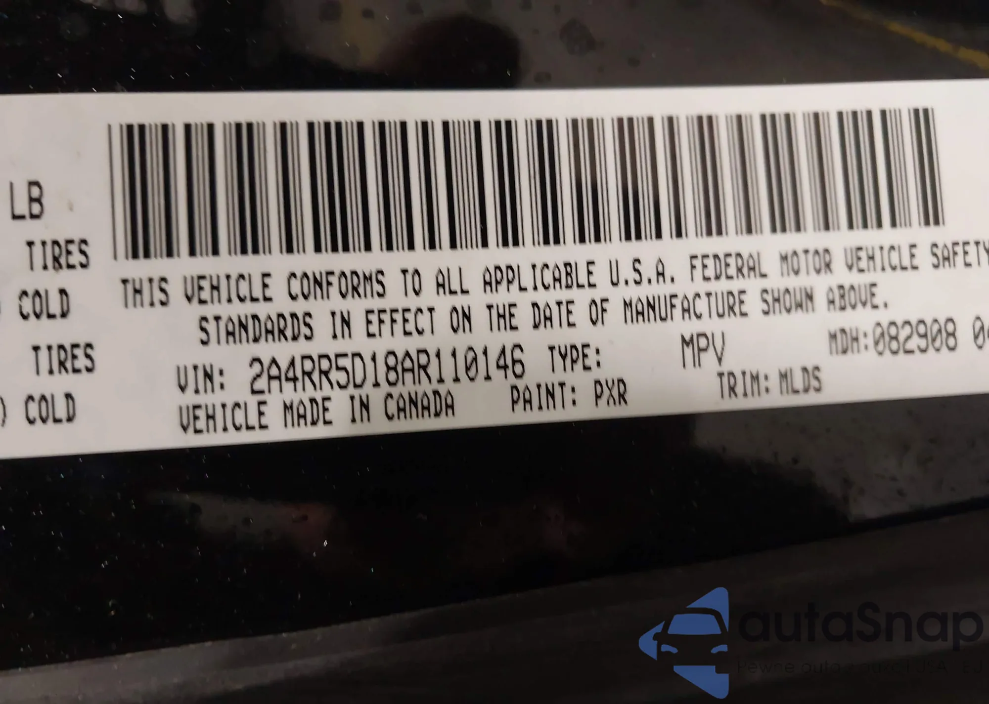 • VIN 2A4RR5D18AR110146