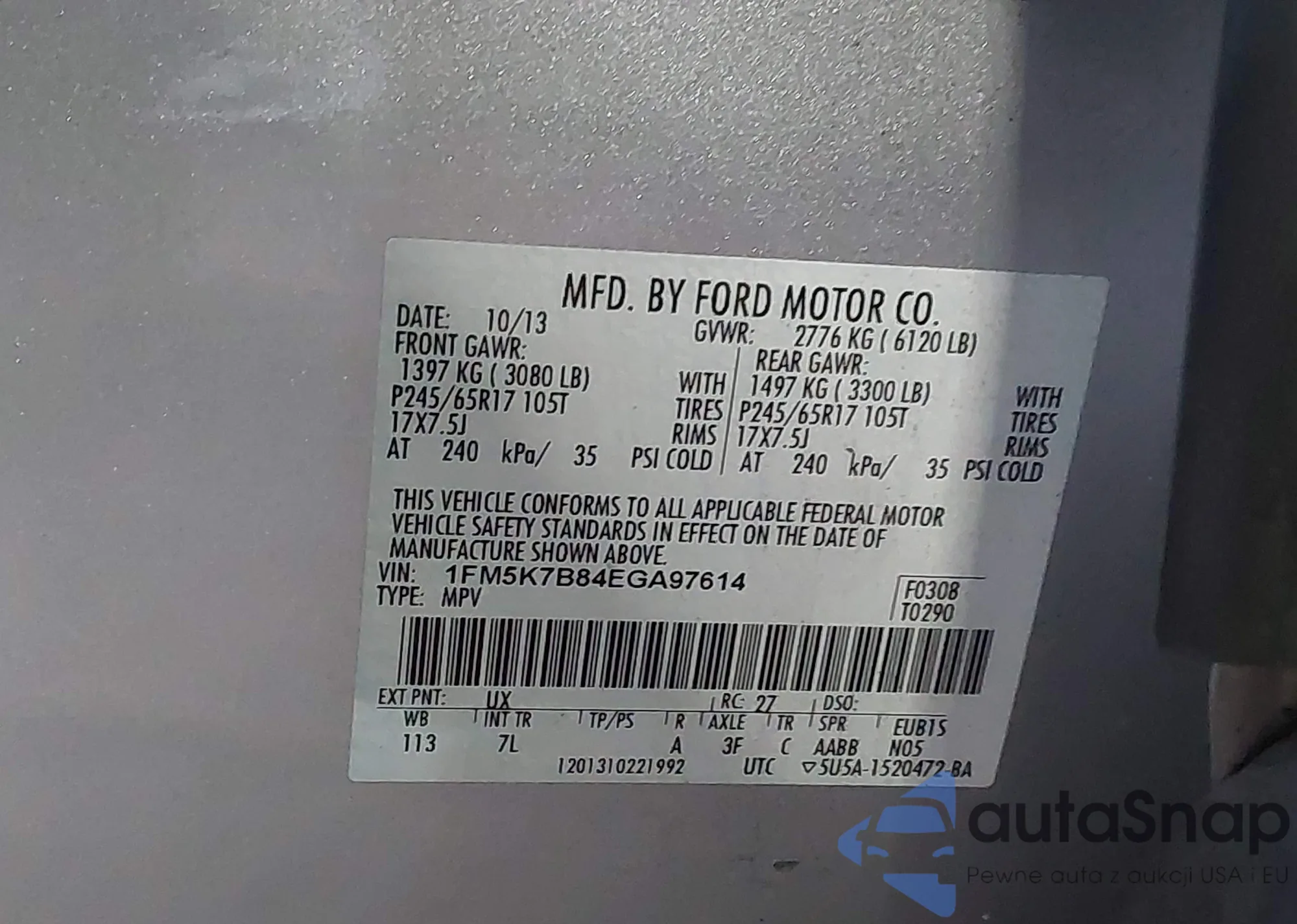 • VIN 1FM5K7B84EGA97614