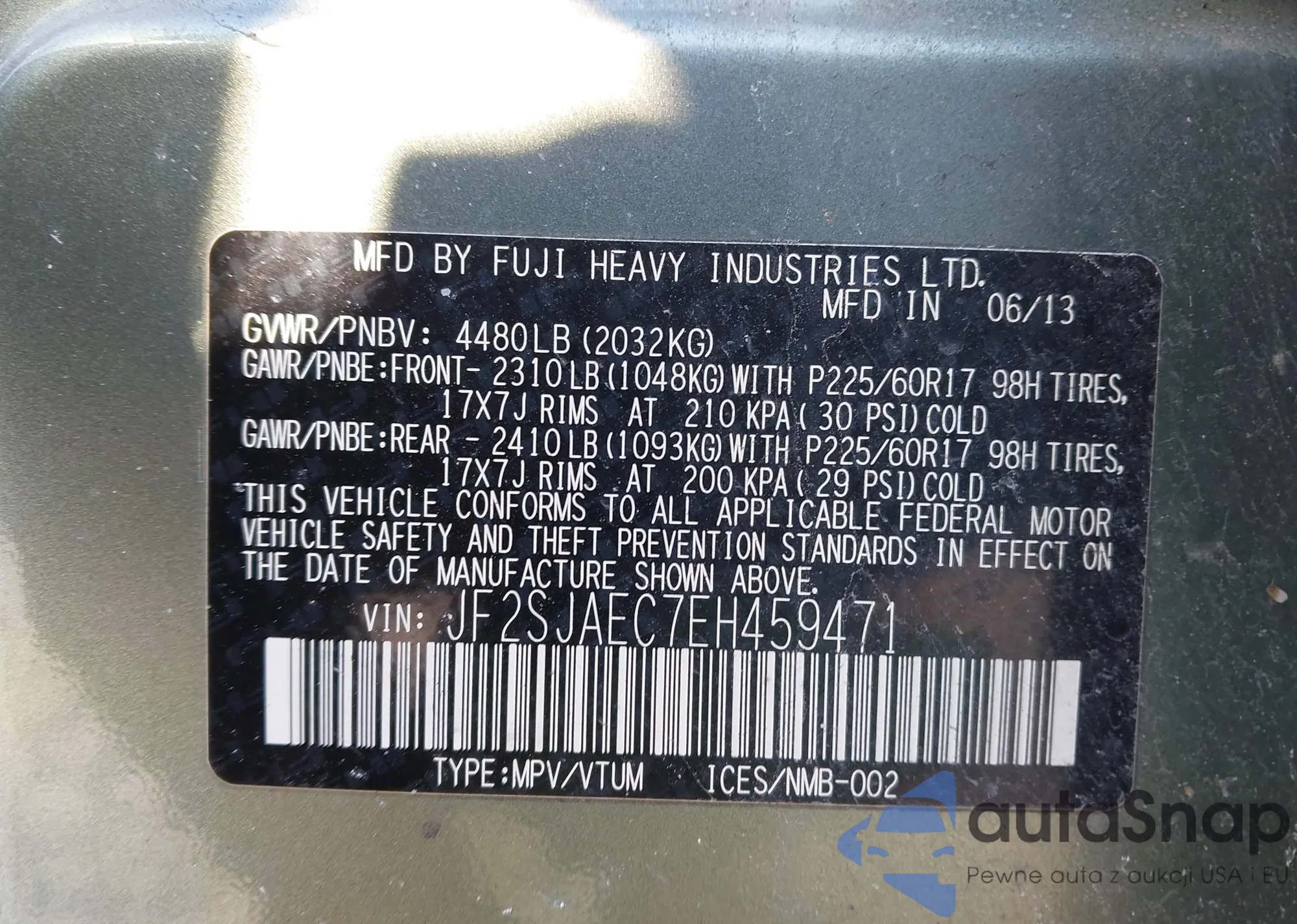 • VIN JF2SJAEC7EH459471