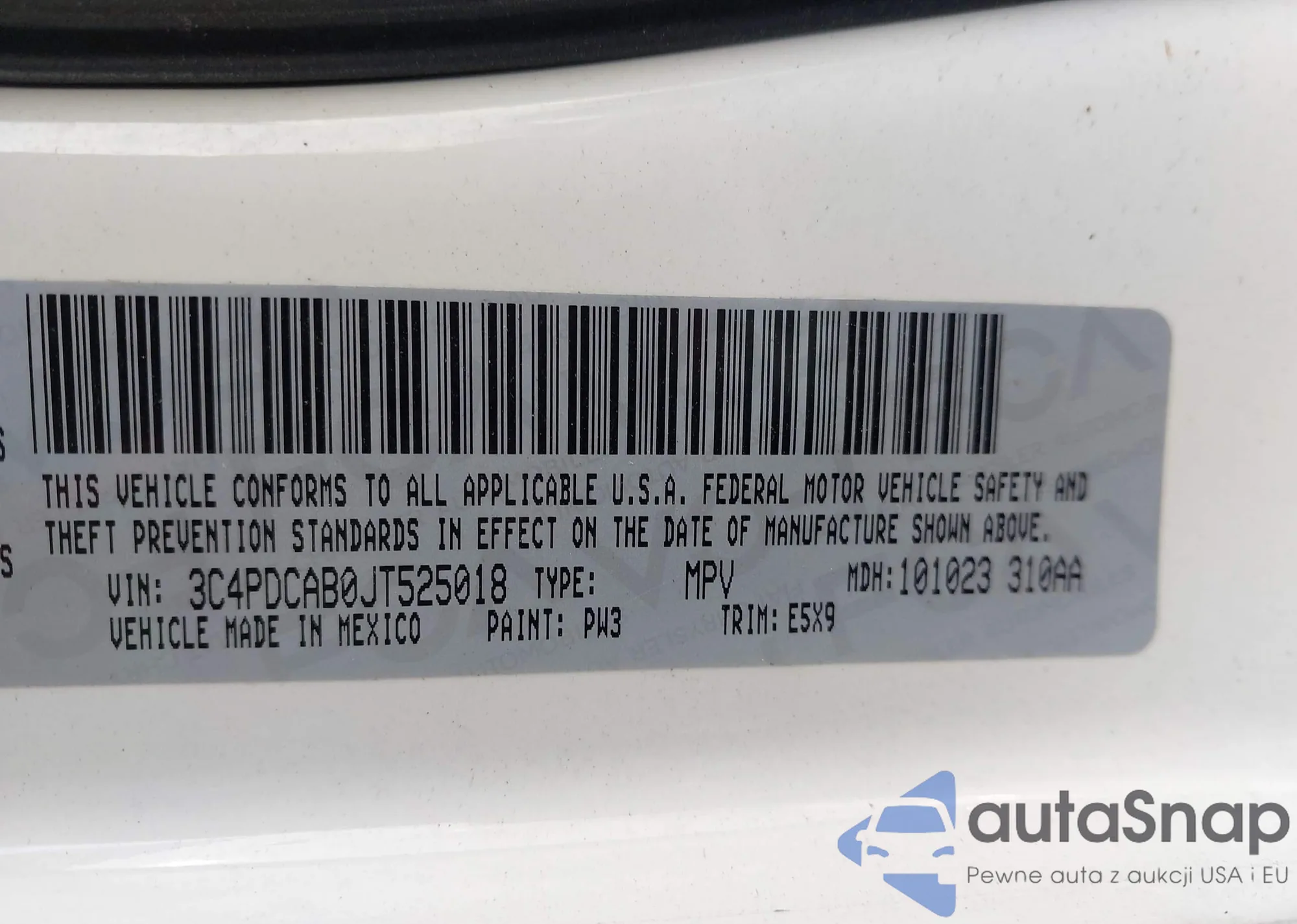 • VIN 3C4PDCAB0JT525018